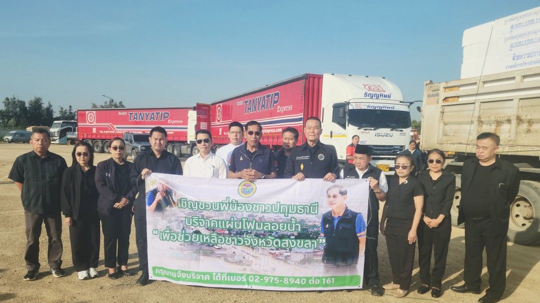 ขบวนรถโฟมและอาหารเครื่องดื่มต่างๆ นำทีมโดย นายสุริยา ธรรมธารา สมาชิกสภา อบจ.เขตเลือกตั้งที่ 1 อ.หนองเสือ โดยก่อนหน้านี้ อบจ.ปทุมธานี ได้ส่งชุดช่วยเหลือชุดแรก นำโดย นายนพพร ขาวขำ รองนายก อบจ.ปทุมธานี พร้อมด้วยเครื่องมือสำคัญ อาทิ เรือท้องแบน และ เจ็ตสกี ซึ่งลำเลียงไปด้วยเครื่องบิน C130 ของกองทัพอากาศ และถือเป็นกำลังสำคัญชุดหนึ่งในการช่วยเหลือพี่น้องอำเภอหาดใหญ่ในขณะนี้