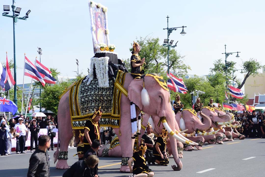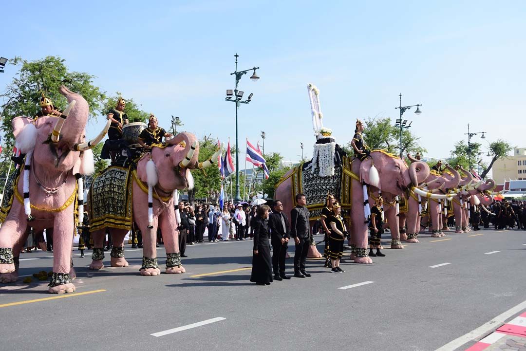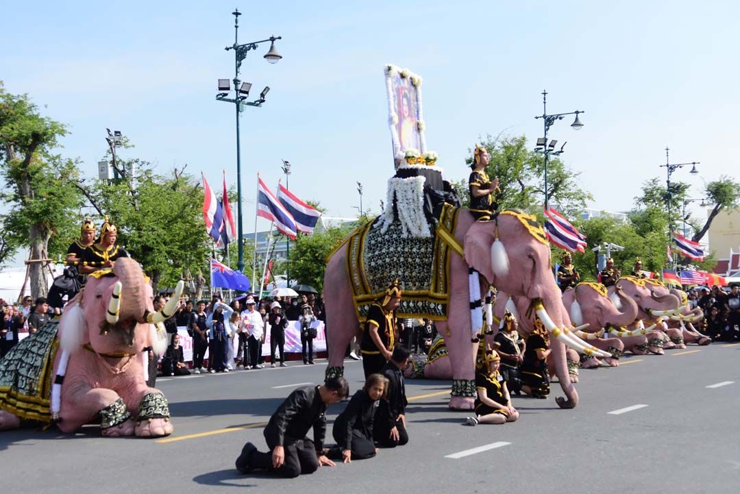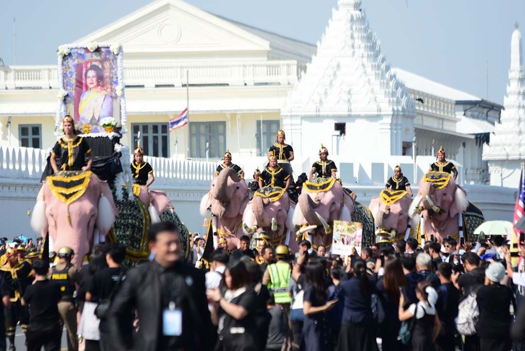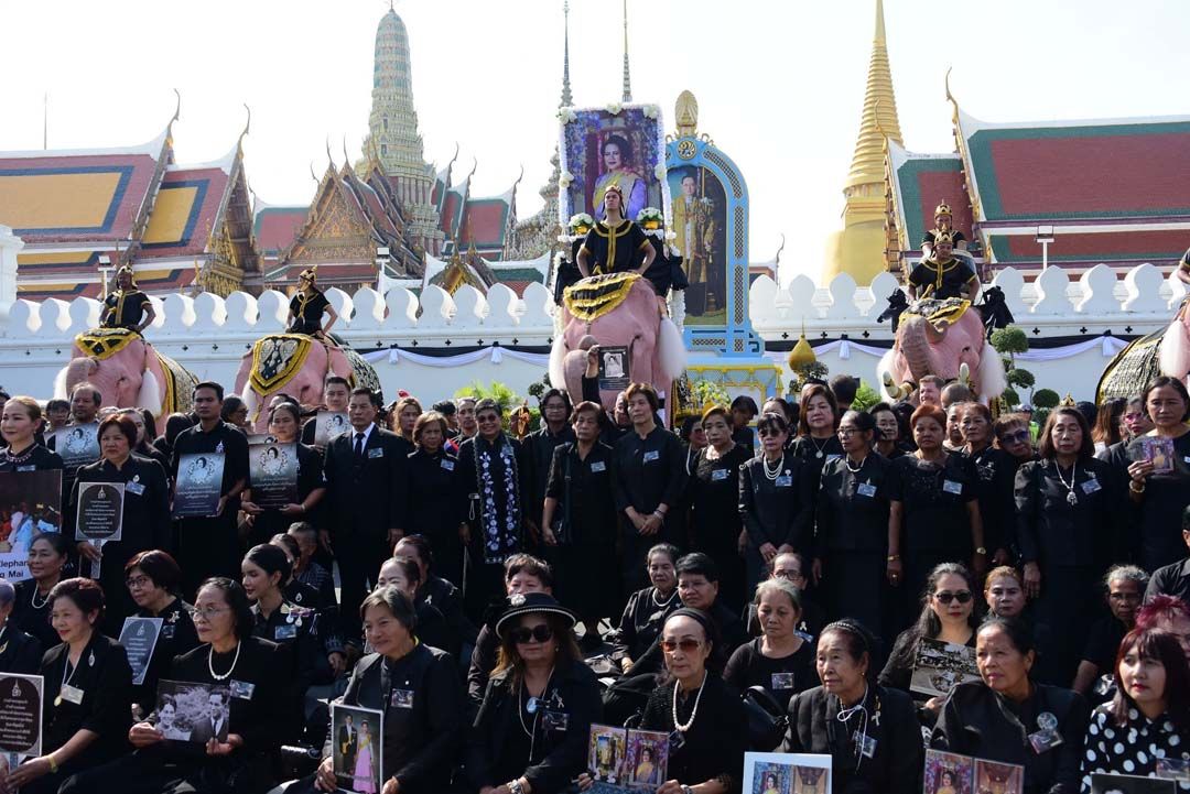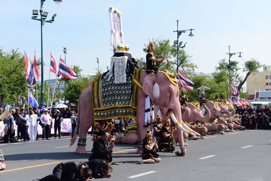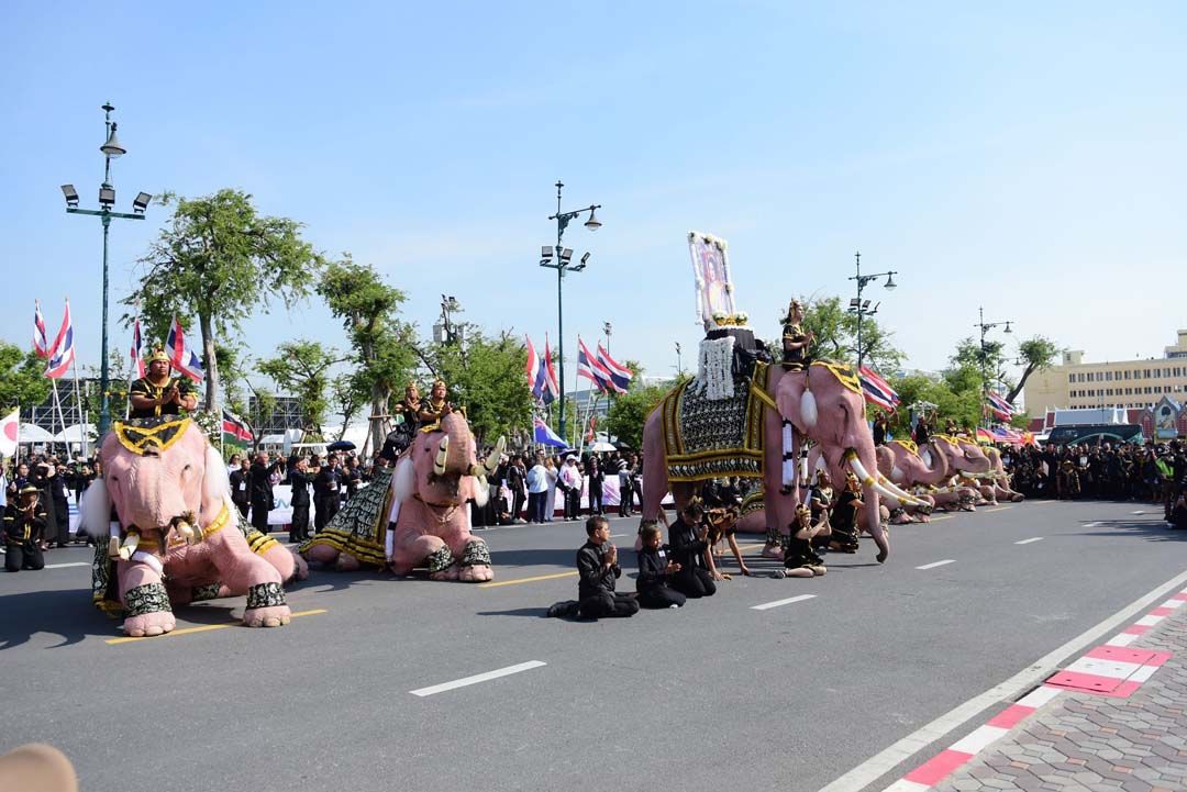 ผู้สื่อข่าวรายงานว่า เมื่อเวลา 09.09 น. กลุ่มคชสารคู่แผ่นดิน และตัวแทนผู้เลี้ยงช้างทั่วประเทศ กว่า 500 คน นำช้าง 11 เชือก จากหมู่บ้านช้างเพนียดหลวง จังหวัดพระนครศรีอยุธยา มาตั้งขบวนที่หน่วยบัญชาการรักษาดินแดน จากนั้นได้เคลื่อนขบวนนำโดย "ช้างพลายสยาม" เดินมายังหน้าประตูมณีนพรัตน์ เพื่อกราบถวายบังคมพระบรมศพสมเด็จพระนางเจ้าสิริกิติ์ พระบรมราชินีนาถ พระบรมราชชนนีพันปีหลวง