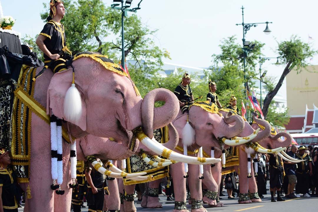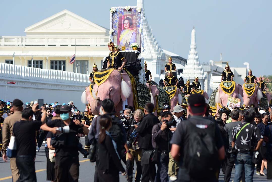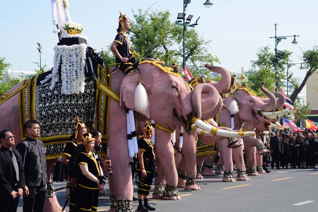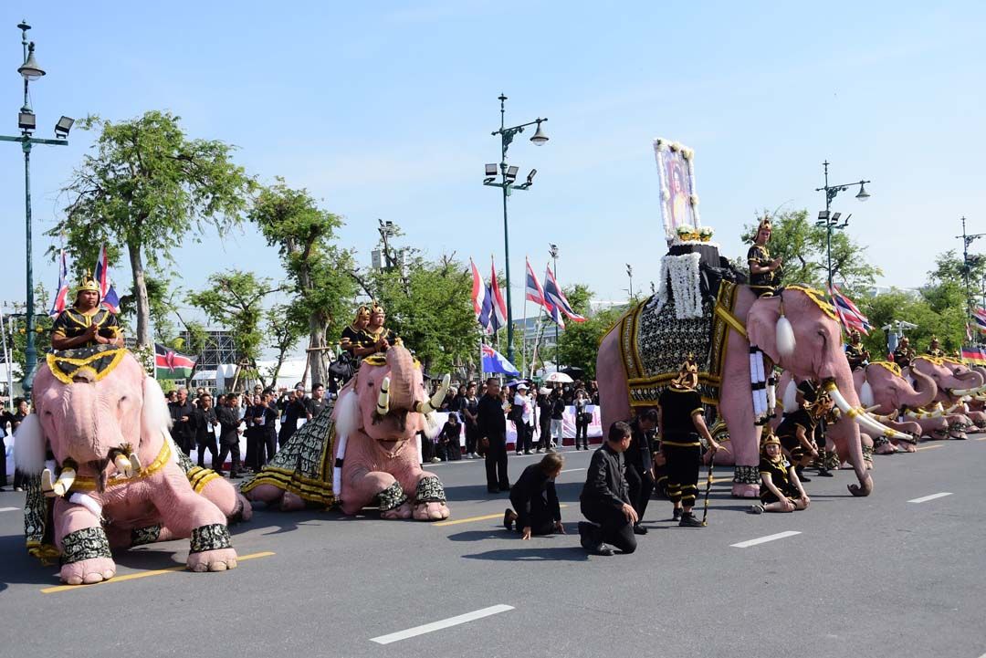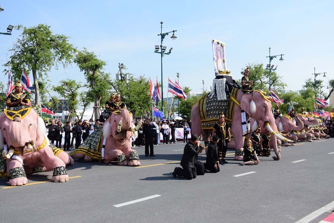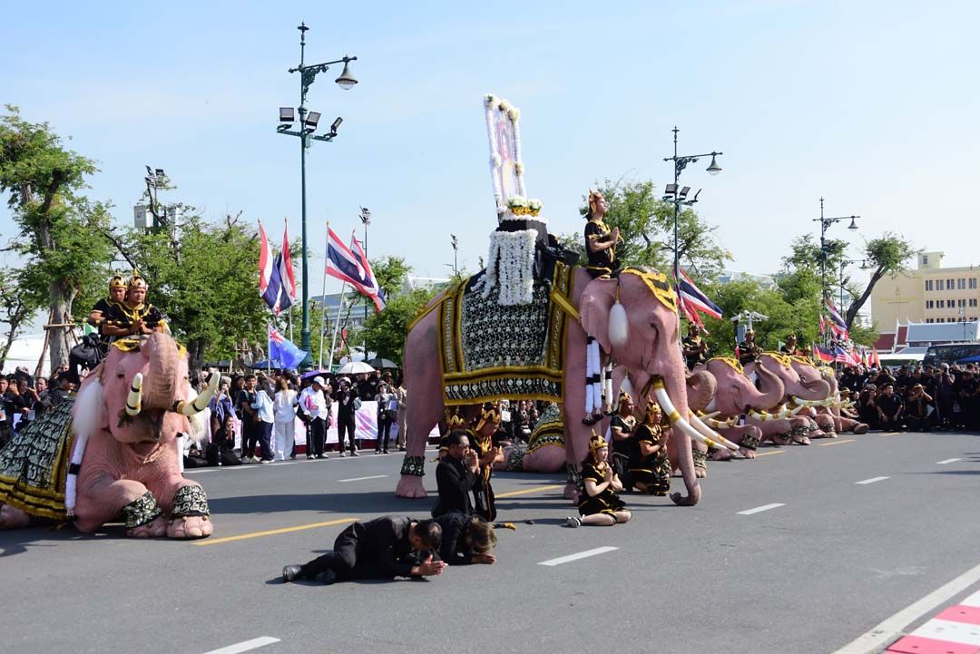 ผู้สื่อข่าวรายงานว่า เมื่อเวลา 09.09 น. กลุ่มคชสารคู่แผ่นดิน และตัวแทนผู้เลี้ยงช้างทั่วประเทศ กว่า 500 คน นำช้าง 11 เชือก จากหมู่บ้านช้างเพนียดหลวง จังหวัดพระนครศรีอยุธยา มาตั้งขบวนที่หน่วยบัญชาการรักษาดินแดน จากนั้นได้เคลื่อนขบวนนำโดย "ช้างพลายสยาม" เดินมายังหน้าประตูมณีนพรัตน์ เพื่อกราบถวายบังคมพระบรมศพสมเด็จพระนางเจ้าสิริกิติ์ พระบรมราชินีนาถ พระบรมราชชนนีพันปีหลวง