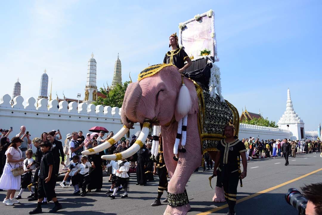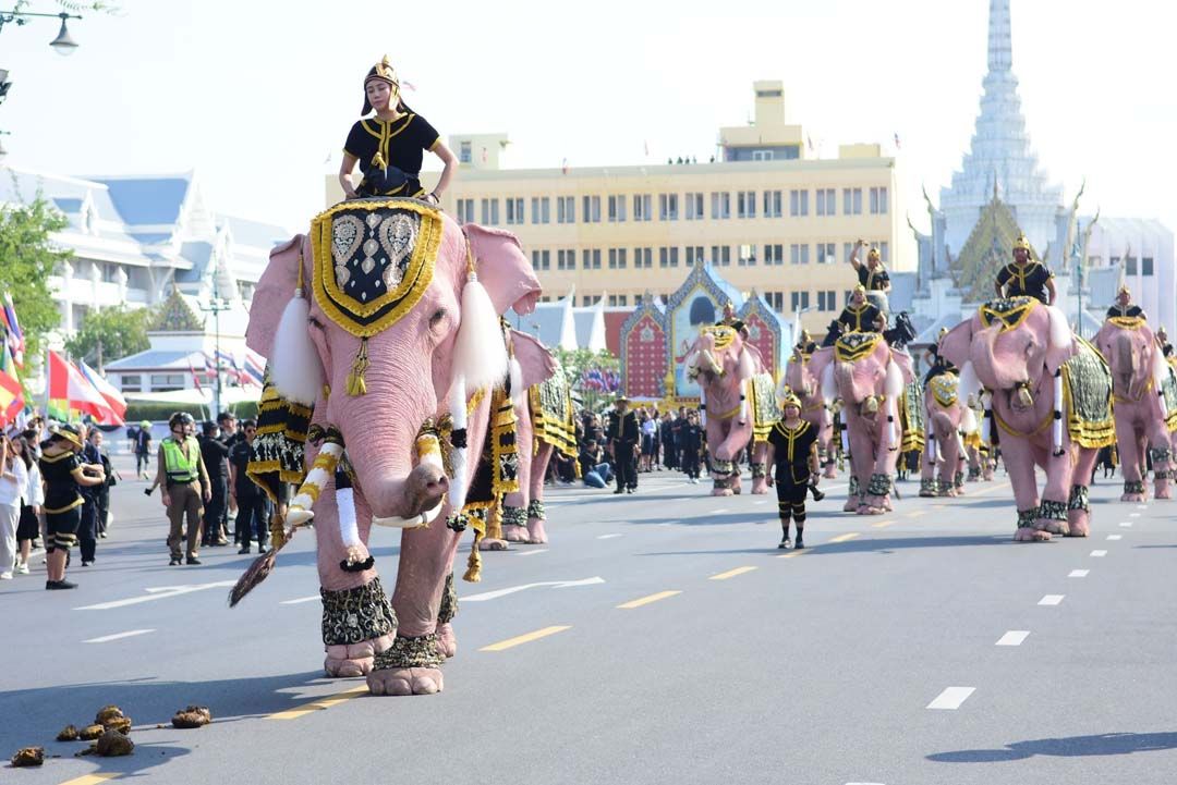 "สำหรับช้าง 11 เชือกที่เดินทางมาวันนี้ เชือกแรกชื่อพลายสยาม เป็นพ่อพันธุ์ชั้นดี นิสัยดีมาก เข้ากับคนได้ดี นอกจากน้ ยังมีพลายกิ่งแก้ว พลายบิ๊ก พลายมรกต พลายมโหรี พลายงาทอง พลายยูโร พลายเยี่ยมฟ้า พลายศรีอัยรา พลายศรีมงคล พลายจันเจ้า พระองค์มีพระราชดำริว่าให้สืบสายพันธุ์แต่ช้างที่ดี พ่อดี แม่ดี เอามาผสมพันธุ์ เพื่อให้ช้างอยู่กับนักท่องเที่ยว และอยู่กับคนไทยทั้งประเทศ มาเที่ยวประเทศไทยต้องเจอช้างนิสัยดี จึงให้ควานช้างมีตะขอไว้เป็นสัญลักษณ์ของควานช้างเท่านั้น ถ้าช้างดีแล้วไม่จำเป็นต้องใช้ตะขอ" นางร่มทองทราย กล่าว
