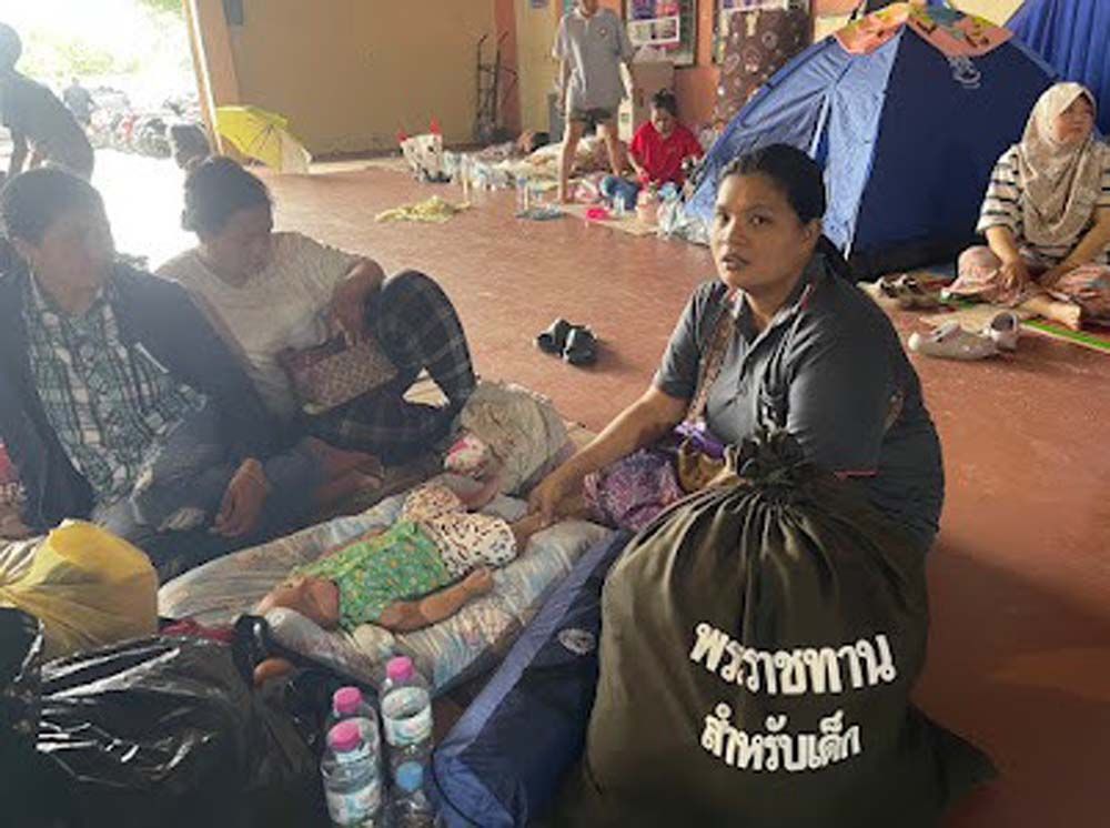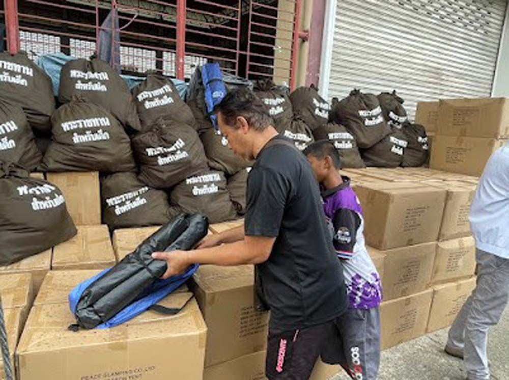 จุดที่ 1. ศูนย์พักพิงมหาวิทยาลัยทักษิณ มอบ - ถุงพระราชทานสำหรับผู้ใหญ่ 600 ถุง - ถุงพระราชทานสำหรับเด็ก 20 ถุง
