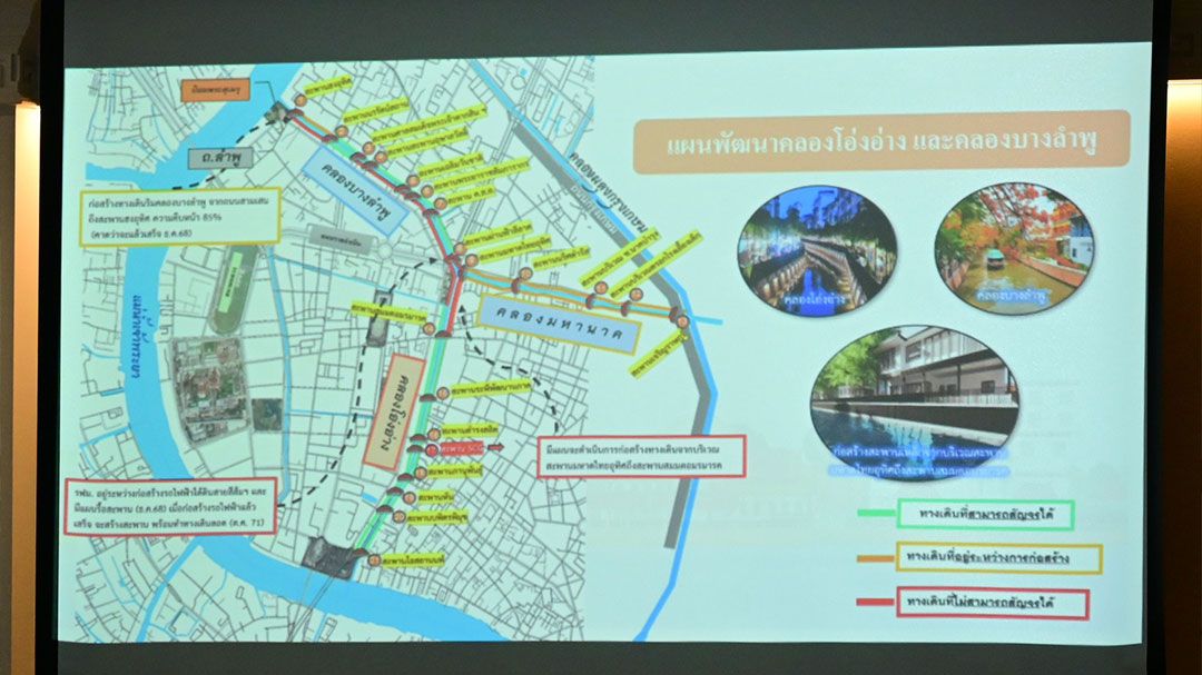ในที่ประชุม สำนักการระบายน้ำรายงานว่า การก่อสร้างเขื่อนและขุดลอกคลองส่วนใหญ่แล้วเสร็จ ขณะที่งานเชื่อมต่อ ทางเดินริมคลอง บริเวณสะพานองค์อุทิศ และทางลอดใต้ถนนสามเสน (ศาลเจ้าพ่อหนู) คาดว่าจะแล้วเสร็จภายใน กลางเดือนธันวาคม 2568 เพื่อเป็นการอำนวยความสะดวกให้ประชาชนในการสัญจร ได้มีการหารือถึงแผนระยะยาวในการสร้างทางลอดใต้สะพานผ่านฟ้าลีลาศ ซึ่งจะดำเนินการร่วมกับการรถไฟฟ้าขนส่งมวลชนแห่งประเทศไทย (รฟม.) และมีการสั่งการให้หน่วยงานหาแนวทางจัดทำทางเดินชั่วคราวหรือกึ่งถาวรเพื่อรองรับการใช้งานของประชาชนในช่วงระหว่างการก่อสร้างที่อาจแล้วเสร็จในปี 2570