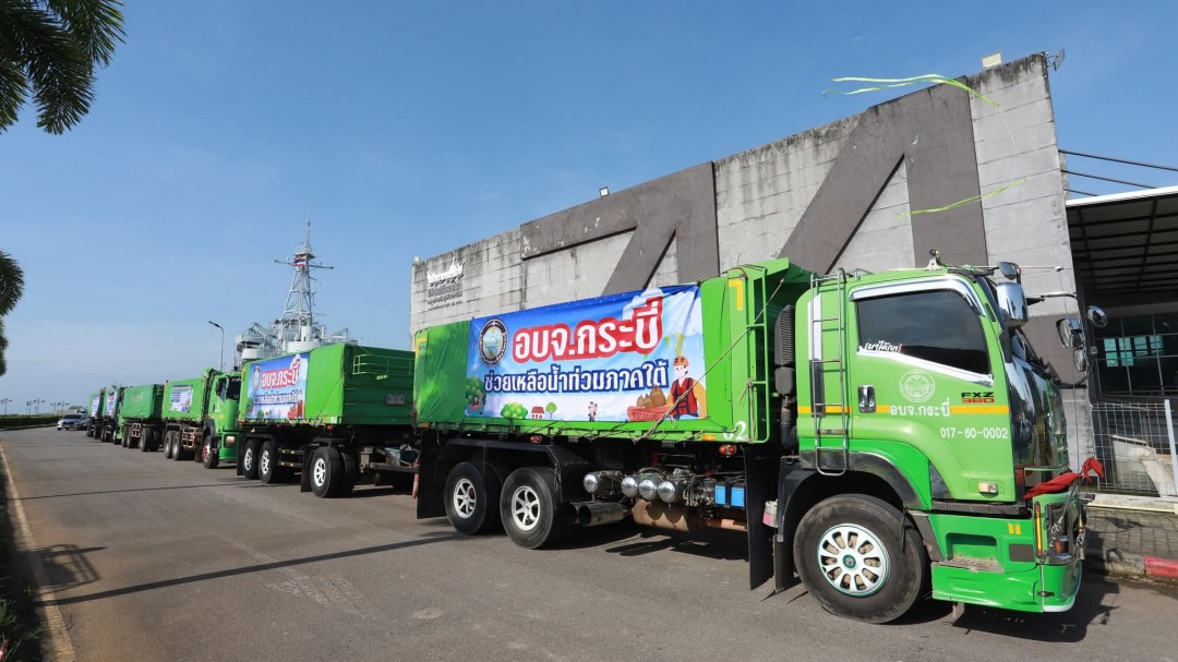 อบจ.กระบี่ ปล่อยขบวนรถพ่วง 3 คัน ลำเลียงสิ่งของบริจาคช่วยผู้ประสบภัยน้ำท่วม ‘พัทลุง-สตูล-ตรัง’