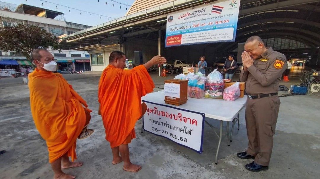 สภ.บางใหญ่ ผนึกกำลังตลาดบางใหญ่ ‘เปิดจุดรับบริจาค’ ส่งต่อสิ่งของจำเป็นช่วยผู้ประสบอุทกภัยภาคใต้