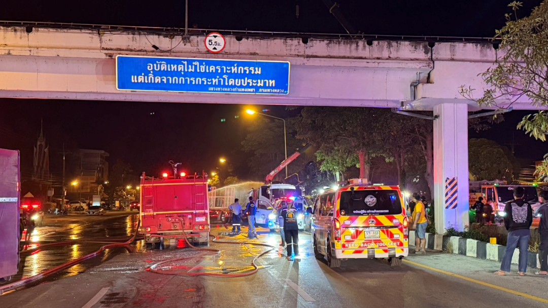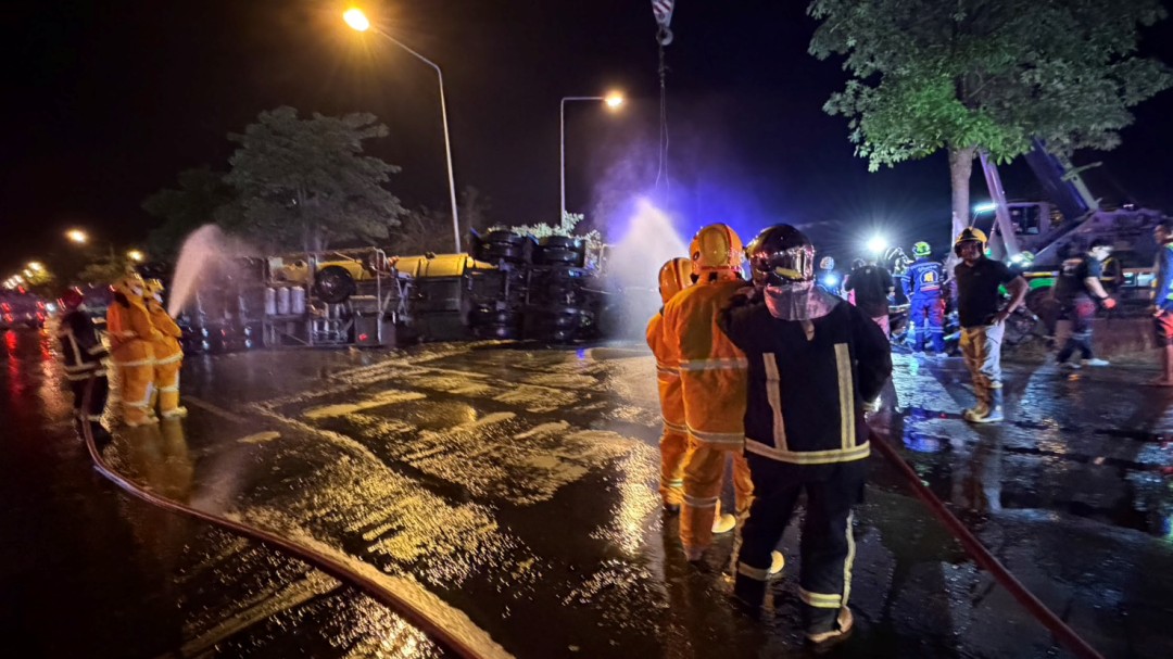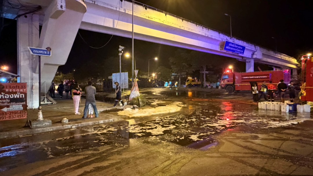 รถบรรทุกน้ำมันพลิกคว่ำเทไปกับพื้นถนนเกือบถึงเกาะกลาง โดยรถคันดังกล่าวบรรทุกน้ำมันดีเซลมาจำนวน 41,000 ลิตร ทำให้น้ำมันไหลเต็มถนนเป็นบริเวณกว้าง เจ้าหน้าที่ต้องสั่งปิดการจราจรบนถนนพหลโยธินตลอดทั้งเส้น และใช้ถนนขาล่องให้รถขับสวนทางกันแทน