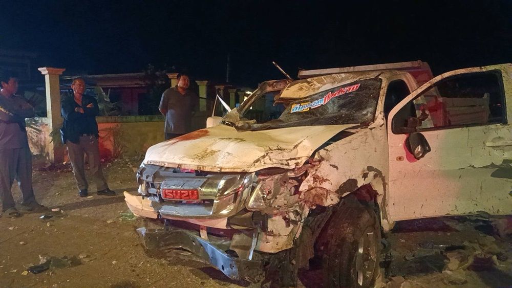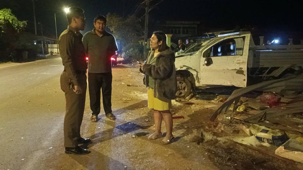 กระบะพุ่งชนร้านค้าขายของชำพังยับ 4 พ่อลูกรอดหวุดหวิด คาดเมาแล้วขับ
