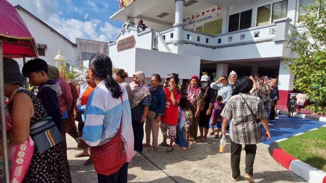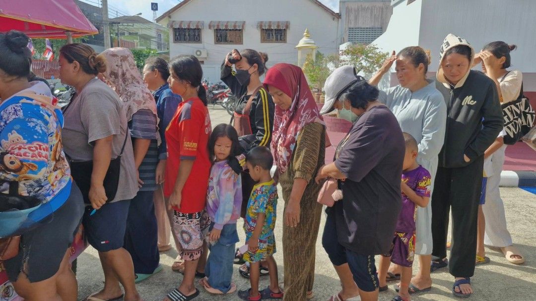 โดยชาวบ้านจำนวนมากทยอยมารอรับความช่วยเหลือตั้งแต่เช้าตรู่ แม้กำหนดการแจกจริงจะเริ่มในเวลา 10.30 น. ซึ่งหลายครอบครัวระบุถึงความเดือดร้อนว่า ‘ปีนี้น้ำมากกว่าทุกปี บ้านที่ไม่เคยท่วมก็ท่วม รายได้ไม่มี อะไรที่ช่วยประคองชีวิตได้ก็ต้องรับไว้ก่อน’