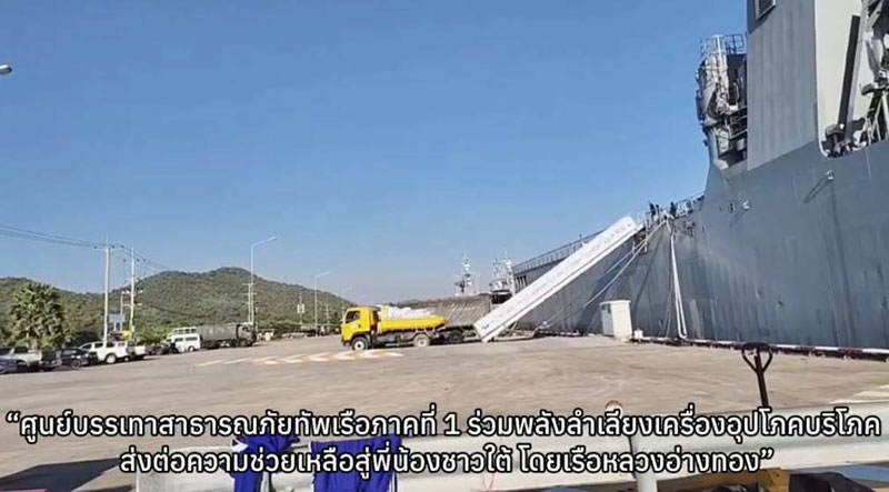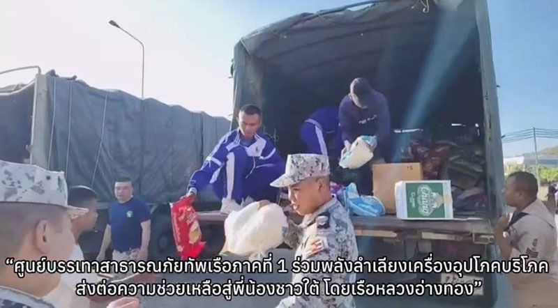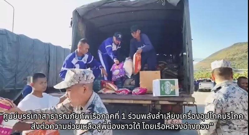 มาแล้ว! เรือหลวงอ่างทองโดย ศบภ.ทรภ.1 รวมพลังลำเลียงเครื่องอุปโภคบริโภคส่งต่อช่วยเหลือพี่น้องชาวใต้