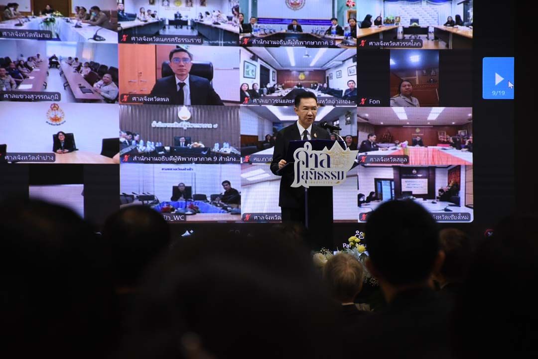 เมื่อวันที่ 1 ธันวาคม 2568 ที่ห้องประชุมใหญ่ สำนักงานศาลยุติธรรม ถ.รัชดาภิเษก นายอดิศักดิ์ ตันติวงศ์ ประธานศาลฎีกา เป็นประธานพิธีเปิดโครงการศาลยุติธรรมเพื่อประชาชน โดย นายธีรทัย เจริญวงศ์ เลขาธิการสำนักงานศาลยุติธรรม พร้อมด้วยคณะผู้บริหารสำนักงานศาลยุติธรรม ข้าราชการฝ่ายตุลาการศาลยุติธรรม ข้าราชการศาลยุติธรรมและสำนักงานศาลยุติธรรม 150 คน ร่วมพิธี