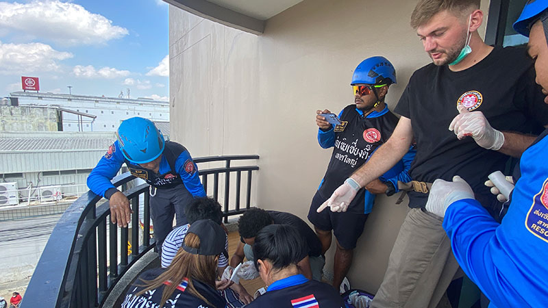ในที่เกิดเหตุ เจ้าหน้าที่พบชายวัยรุ่นคนหนึ่ง อายุ 17 ปี นอนนิ่งอยู่บนบริเวณจั่วใต้หลังคาด้านหน้าของโรงแรม ซึ่งอยู่ระหว่างชั้น 3 โดยผู้บาดเจ็บมีอาการรู้สึกตัวและค่อนข้างปลอดภัย แต่ได้รับบาดเจ็บที่ข้อเท้าขวาผิดรูป