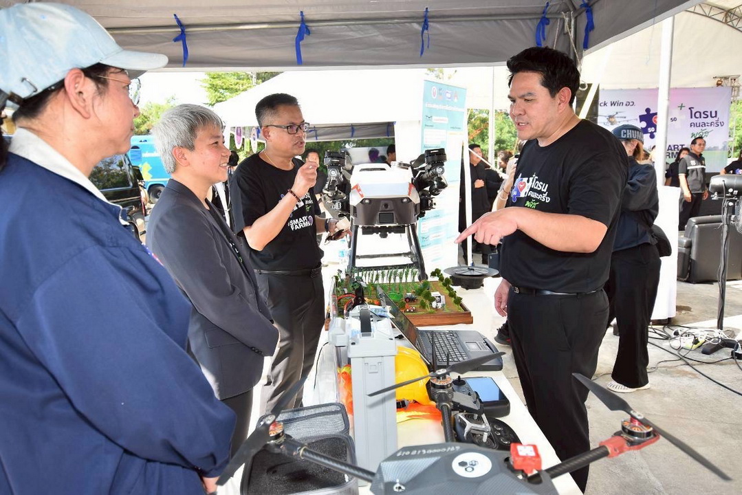 โดยบรรยากาศเป็นไปอย่างคักคัก มีหน่วยงานของกระทรวง อว. ได้แก่ อุทยานวิทยาศาสตร์ภูมิภาค ภายใต้สำนักงานปลัดกระทรวง อว. สำนักงานนวัตกรรมแห่งชาติ (NIA) สำนักงานการวิจัยแห่งชาติ (วช.) สำนักงานพัฒนาวิทยาศาสตร์และเทคโนโลยีแห่งชาติ (สวทช.) กรมวิทยาศาสตร์บริการ (วศ.) สำนักงานพัฒนาเทคโนโลยีอวกาศและภูมิสารสนเทศ (GISTDA) สำนักงานคณะกรรมการส่งเสริมวิทยาศาสตร์ วิจัยและนวัตกรรม (สกสว.) และหน่วยบริหารและจัดการทุนด้านการพัฒนาระดับพื้นที่ (บพท.) นำโดรนชนิดต่างๆ และนิทรรศการมาจัดแสดงมีเกษตรกรให้ความสนใจเป็นจำนวนมาก