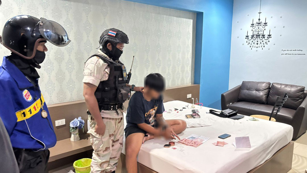 สุดท้ายไม่รอด! ฝ่ายปกครองบางละมุงประสานตำรวจ ล่อซื้อ-รวบผู้ค้ายา 2 ราย ‘สาวทอม-หนุ่มสุโขทัย’ คาห้องเช่ารายวัน ยึดยาไอซ์-ยาบ้าเพียบ