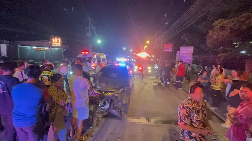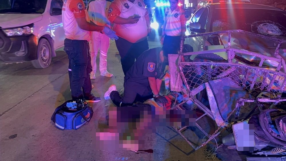 สองหนุ่มพม่าขี่ซาเล้งเลี้ยวตัดหน้าเก๋งชนดับ 2 ราย ตร.เร่งเช็กกล้องวงจรปิดสรุปเหตุการณ์