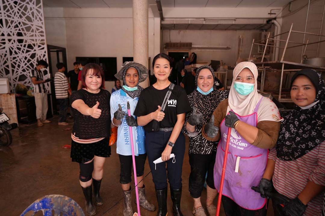 ด้าน ทพญ.ศรีญาดา กล่าวว่า วันนี้เรามาทำความสะอาดบ้านเรือนพี่น้อง โดยเรามาช่วยวางระบบว่าต้องมีรถบรรทุกน้ำช่วยฉีดน้ำ มีเครื่องฉีดน้ำแรงดันสูง มีอาสาสมัครช่วยขนขยะออกจากบ้าน มีอุปกรณ์ไม้กวาดทำความสะอาดดินโคลนจากบ้าน และใช้รถน้ำฉีดซ้ำทำความสะอาดอีกครั้ง ซึ่งถ้าเรายืดแนวทางทำความสะอาดเป็นลำดับ จัดโซนทำความสะอาดไล่ไปทีละโซน ทีละซอยก็จะช่วยให้การทำงานง่ายขึ้นเป็นระบบมากขึ้น เชื่อว่าเราเริ่มต้นทำความสะอาดเช้านี้แล้ว เย็นนี้น่าจะเริ่มเห็นผล และเป็นแนวทางให้ทีมของพรรคเพื่อไทยที่จะทยอยลงมาหาดใหญ่ช่วยพี่น้องทำความสะอาดได้ดูแลทำความสะอาดเป็นระบบต่อไป