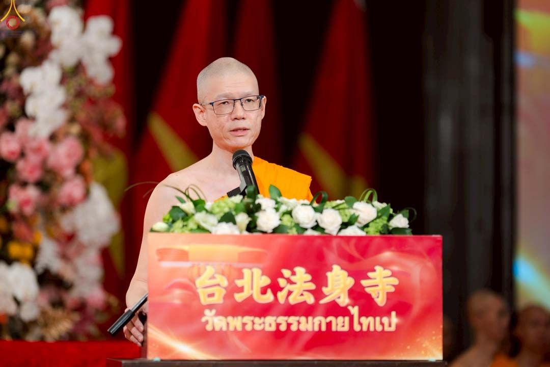 ด้าน ท่าน คันโป เชวัง ริกซิน (Khenpo Tsewang Rigzin) ประธานสมาคมศึกษาพระพุทธศาสนาทิเบตนานาชาติ สาธารณรัฐจีน ได้กล่าวคำอวยพร ในโอกาสครบรอบ 30 ปี วัดพระธรรมกายไทเป ว่า “วันนี้เป็นวาระครบรอบ 30 ปี แห่งการก่อตั้งวัดพระธรรมกายไทเป อาตมาภาพขอแสดงความยินดีและอวยพรให้พิธีในวันนี้ เต็มเปี่ยมด้วยความเป็นสิริมงคลและความสำเร็จบริบูรณ์ ข้าพเจ้ารู้สึกยินดีอย่างยิ่งที่ได้มาร่วมงานในครั้งนี้ เมื่อสองปีก่อน ข้าพเจ้าเคยมีโอกาสไปเยือนวัดพระธรรมกายที่ประเทศไทย รวมถึงสาขาต่าง ๆ และได้เห็นด้วยตาตนเองว่า วัดพระธรรมกายได้ทุ่มเทแรงกายแรงใจอย่างยิ่งยวด เพื่อการสืบสานและเผยแผ่พระธรรมคำสอนของพระสัมมาสัมพุทธเจ้า ข้าพเจ้ารู้สึกเคารพและชื่นชมจากใจจริง อย่างที่ทุกท่านทราบดีว่า โลกของเราในปัจจุบัน กำลังเผชิญการเปลี่ยนแปลงครั้งใหญ่ ทั้งปัญหาสภาพภูมิอากาศ ปัญหาสิ่งแวดล้อม รวมถึงเทคโนโลยีใหม่อย่าง ปัญญาประดิษฐ์ (AI) ที่กำลังเปลี่ยนโลกอย่างที่ไม่เคยมีมาก่อน ในยุคเช่นนี้ พวกเราท่านทั้งหลาย ซึ่งเป็นสาวกของพระสัมมาสัมพุทธเจ้า ไม่ว่าจะอยู่ในนิกายใด ล้วนเป็นเหมือนพี่น้องกัน จึงจำเป็นอย่างยิ่งที่เราต้อง ร่วมแรงรวมใจด้วยความสามัคคี โดยเฉพาะอย่างยิ่ง คณะสงฆ์ผู้ทรงศีล ควรเป็นแบบอย่างแห่งความสมัครสมานกลมเกลียว เพราะถ้าพระสงฆ์จากทั้ง 3 สายใหญ่ คือ เถรวาท มหายาน และวัชรยาน (ทิเบต) สามารถร่วมมือและอยู่ร่วมกันด้วยความกลมเกลียว เหล่าศิษยานุศิษย์และพุทธศาสนิกชนทั่วโลก ก็ย่อมจะสามารถอยู่ร่วมกันอย่างสงบ และมีความสุขได้เช่นกัน สิ่งนี้จะเป็นแบบอย่างให้มนุษยชาติ เดินไปสู่หนทางแห่งสันติ และความกลมเกลียวในที่สุด ความสามัคคีของคณะสงฆ์นั้น ไม่ใช่เพียงแค่ในรูปแบบภายนอกเท่านั้น แต่ต้องเกิดจากการตระหนักรู้ในใจว่า เราทั้งหลายล้วนเป็น ศิษย์ของพระศากยมุนีพุทธเจ้า และมีแนวทางปฏิบัติเดียวกัน คือ การดำรงรักษาพระวินัยและปฏิบัติตามคำสอนของพระองค์ ด้วยความเข้าใจนี้ การแลกเปลี่ยนประสบการณ์ระหว่างนิกายต่าง ๆ จึงเป็นสิ่งที่มีคุณค่า และจำเป็นอย่างยิ่งในยุคปัจจุบัน หากมองในภาพรวมของพระพุทธศาสนาในยุคนี้ เราจะเห็นได้ว่า จำนวนพระภิกษุและพุทธศาสนิกชนลดลงเรื่อย ๆ โดยเฉพาะอย่างยิ่งในหมู่เยาวชน นี่คือปัญหาที่เราทุกคนต้องตระหนักและร่วมกันแก้ไขอย่างเร่งด่วน ดังนั้น ทั้งพระสงฆ์และคฤหัสถ์ ต่างควรมีส่วนร่วมรับผิดชอบในการธำรงพระพุทธศาสนา รวมพลังของชาวพุทธให้มั่นคง และร่วมกันนำทางเยาวชน ให้ก้าวเข้าสู่เส้นทางแห่งพุทธธรรม ในวันนี้ ข้าพเจ้า
