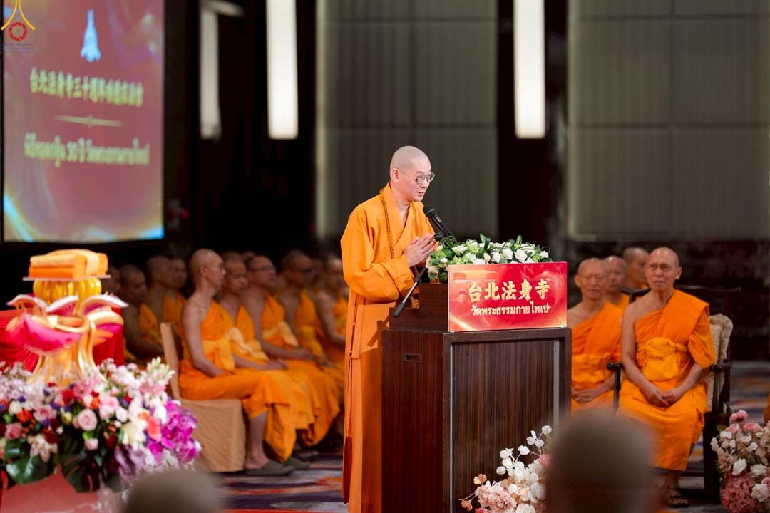 วันนี้ในวาระครบรอบ 30 ปี วัดพระธรรมกายไทเป อาตมาภาพรู้สึกเป็นเกียรติและปีติยินดีอย่างยิ่ง ที่ได้มาร่วมงานอันศักดิ์สิทธิ์นี้ ขออำนวยพรให้พระภิกษุสงฆ์และพุทธศาสนิกชนทุกท่าน ผนึกเรี่ยวแรง กำลังใจและความสามารถ ที่จะเผยแผ่ธรรมเพื่อความหลุดพ้นแห่งองค์สมเด็จพระสัมมาสัมพุทธเจ้าไปทั่วโลก พร้อมทั้ง ธำรงรักษาแบบอย่างพระพุทธศาสนาของไทยไว้ให้มั่นคงสืบไป ขอให้ทุกท่าน ประสบแต่ความสุข ความเจริญ ความสำเร็จ เปี่ยมด้วยปีติในธรรม มีความเพียรในการปฏิบัติธรรม และสมบูรณ์ถึงพร้อมด้วยบุญกุศลและปัญญา ขออนุโมทนา มา ณ โอกาสนี้”