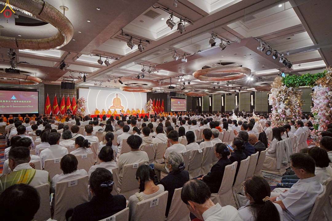 พิธีเริ่มในภาคสาย เป็นการกล่าวสุนทรพจน์แสดงความชื่นชมยินดี อนุโมทนา ในโอกาสฉลอง 30 ปี วัดพระธรรมกายไทเป จากพระมหาเถระผู้นำ และผู้แทนวัดและองค์กรพุทธ, พิธีถวายมหาสังฆทานแด่คณะสงฆ์สามนิกาย ทั้งเถรวาท มหายาน วัชรยาน ร่วมเจริญพุทธมนต์ และรับถวายมหาสังฆทานนานาชาติ กว่า 100 รูป ภาคบ่ายเป็นพิธีทอดกฐินสามัคคี โดยมีริ้วขบวนเจ้าภาพอัญเชิญผ้าจีวรกฐิน และผ้าไตรจีวร ปัจจัยไทยธรรม เป็นบริวารกฐิน เข้าสู่ศูนย์กลางพิธี จากนั้น ประธานสงฆ์เจริญสมาธิภาวนา และเจ้าภาพประกอบพิธีถวายผ้าไตรจีวรกฐิน โดยมีคณะสงฆ์ เจ้าภาพ สาธุชน ชาวพุทธ ทั้งชาวไต้หวัน และชาวไทย จากภูมิภาคต่าง ๆ ได้แก่ ไต้หวัน สิงคโปร์ มาเลเซีย ฮ่องกง ญี่ปุ่น จีน เกาหลีใต้ ไทย สหรัฐอเมริกา ยุโรป ศรีลังกา อินโดนีเซีย บรูไน โอเชียเนีย จาก 14 ประเทศ/เขต/ภูมิภาค ร่วมงาน 500 กว่าคน