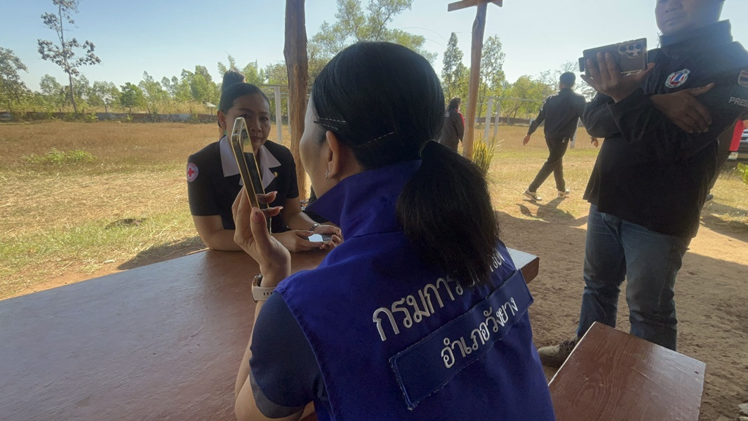 ต่อมาในวันเดียวกัน เพจที่ทำการปกครองอำเภอวังยาง โพสต์ข้อความว่า “วันที่ 2 ธันวาคม 2568 ตามที่ได้ปรากฏในสื่อสังคมออนไลน์ กรณี เด็กหญิงถูกแม่เลี้ยงทำร้ายร่างกาย เวลา 18.30 น. นางสาวภิรมย์ ก้อนแพง นายอำเภอวังยาง พร้อมด้วยคุณครูประจำชั้นจากโรงเรียนหนองโพธิ์วังโน กำนันและผู้ใหญ่บ้าน ตำบลหนองโพธิ์ ได้ลงพื้นที่เพื่อเยี่ยมเด็กหญิง อายุ 12 ปี เรียนอยู่ชั้นประถมศึกษาปีที่ 6 โรงเรียนแห่งหนึ่ง ปัจจุบันอาศัยอยู่บ้านหมู่ 4 ตำบลหนองโพธิ์ อำเภอวังยาง จังหวัดนครพนม โดยอาศัยอยู่กับแม่เลี้ยงคนใหม่ ส่วนพ่อบุญธรรม ไม่ทราบชื่อ ปัจจุบันไปรับจ้างกรีดยางที่อำเภอเบตง จังหวัดยะลา ประมาณ 4 ปีแล้ว สอบถามจากชาวบ้านข้างเคียงทราบว่าไม่กลับมาบ้านกว่า 3 ปีแล้ว จากข้อมูลของครูประจำชั้น เด็กมีภาวะพฤติกรรมทางอารมณ์ บางครั้งนั่งเฉย ๆ ไม่รับรู้อะไร บางครั้งก็ร้องไห้บางครั้งก็ตีเพื่อน เคยขโมยของเพื่อน และทราบว่ามีการทำร้ายร่างกายอยู่บ่อยครั้งจากแม่เลี้ยงและจะให้หยุดพักการเรียนร่วมสัปดาห์ อำเภอ ได้ประสาน หน่วยงานที่เกี่ยวข้องอาทิ พัฒนาสังคมและความมั่นคงของมนุษย์ บ้านพักเด็กและครอบครัวจังหวัดนครพนมนัดหมายร่วมลงพื้นที่ 10.00 น. เพื่อแก้ไขปัญหาต่อไป”