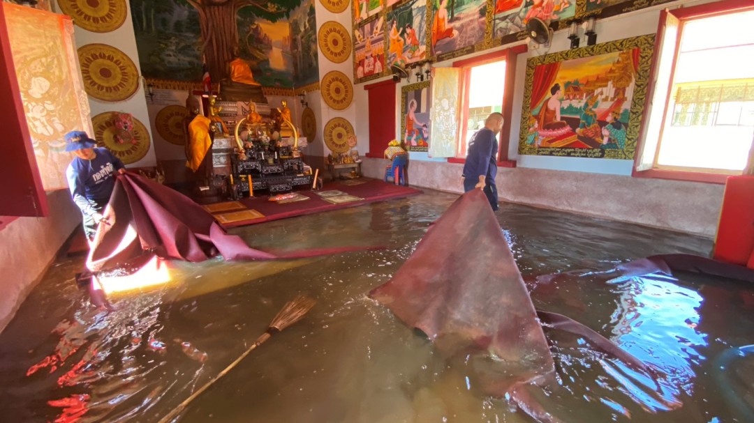 ‘ปกติท่วมระดับหัวเข่า แต่มาครั้งนี้น้ำสูงเกือบถึงอก เตรียมการไว้แล้วแต่ก็สู้ปริมาณน้ำไม่ไหว ร้านเราอยู่ติดถนน รถวิ่งผ่านทีน้ำซัดที ของล้มเสียหายหมด’ น.ส.วิลาภรณ์ กล่าว