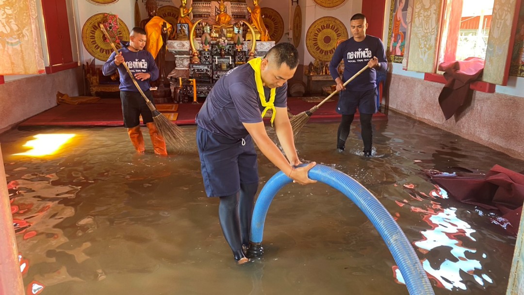 ขณะที่การฟื้นฟูพื้นที่สาธารณะ ที่วัดอาทรรังสฤษฏิ์ เทศบาลตำบลกำแพง จังหวัดสตูล ได้รับความเสียหายจากน้ำท่วมเช่นกัน โดย ทหารเรือหน่วยรักษาความปลอดภัยทางทะเลเกาะหลีเป๊ะ สถานีเรือละงู ได้ระดมกำลังพลเข้าช่วยเหลือในการสูบน้ำที่ท่วมขังภายในโบสถ์ พร้อมทำความสะอาดพื้นที่เพื่อให้ศาสนสถานสามารถกลับมาใช้งานได้ตามปกติโดยเร็ว