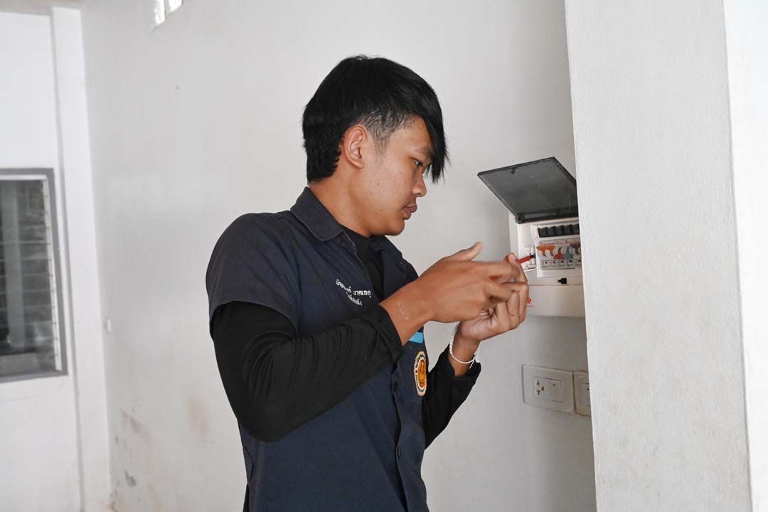 สำหรับการตรวจสอบระบบไฟฟ้าในบ้านเบื้องต้นในวันนี้ นักศึกษาอาชีวะช่างไฟฟ้าได้ลงพื้นที่ตรวจสอบตู้เมนไฟฟ้าและเบรกเกอร์ ปลั๊กไฟและสวิตช์ ตรวจสอบระบบไฟแสงสว่าง ตรวจสอบมิเตอร์ไฟฟ้า พร้อมกับตรวจสอบและซ่อมเครื่องใช้ไฟฟ้าที่มีขนาดใหญ่ ไม่สะดวกในการเคลื่อนย้ายใน บริเวณราษฎร์อุทิศ ซอย 30/2