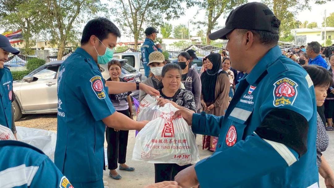 โดยวันนี้ (วันพฤหัสบดีที่ 4 ธันวาคม พ.ศ.2568) นายรัชพร ประสงค์ทรัพย์ หัวหน้าแผนกสาธารณภัย นำทีมแผนกส่งเสริมการศึกษาและอาชีพ แผนกสาธารณภัย ฝ่ายสังคมสงเคราะห์ และแผนกบรรเทาสาธารณภัย (คาราวานป่อเต็กตึ๊ง ส่งต่อธารน้ำใจ สาย 2) ยกทัพเครื่องอุปโภคบริโภคบรรทุกรถเทรลเลอร์ และรถบรรทุกมูลนิธิฯ ลงพื้นที่จังหวัดพัทลุง แจกจ่ายให้แก่ผู้ประสบอุทกภัย ในพื้นที่ ตำบลลำปำ และตำบลชัยบุรี อำเภอเมือง, ตำบลพนางตุง อำเภอควนขนุน รวมจำนวน 1,000 ชุด ซึ่งพื้นที่ดังกล่าวเป็นพื้นที่ติดชายทะเล และยังคงประสบอุทกภัยในขณะนี้ โดยมี พัทลุงการกุศลมูลนิธิ (ซ่งเต็กเซี่ยงตึ๊ง) เป็นผู้ประสานงาน ร่วมแจกจ่าย รวมทั้งนำทีมเจ้าหน้าที่กู้ภัย และจิตอาสาจากโรงเรียนเทศบาลจุ่งฮั่ว พัทลุง ร่วมแพ็กถุงยังชีพ