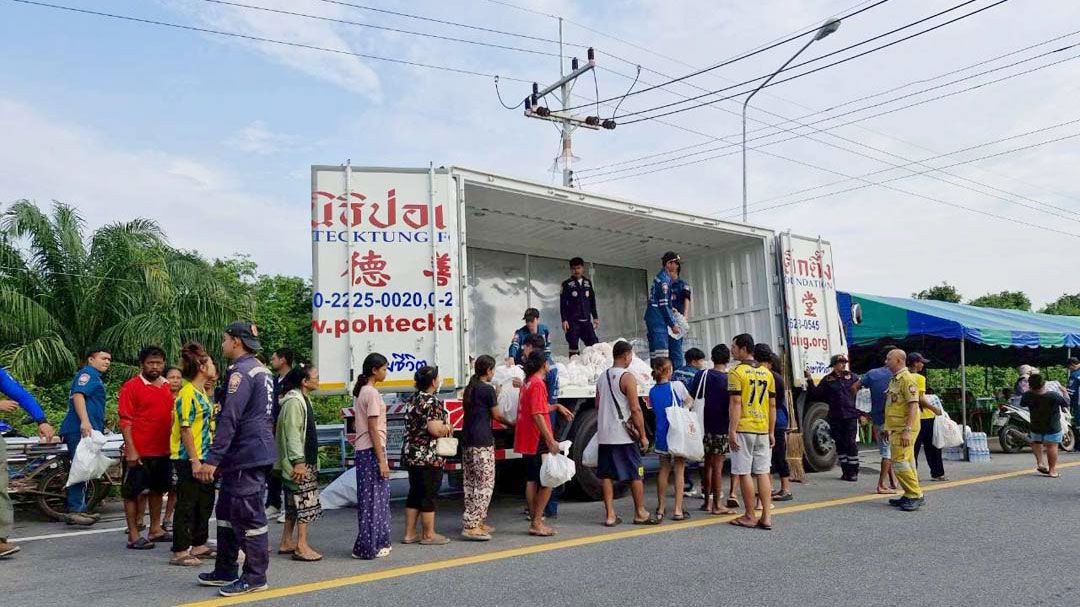 สำหรับการแจกจ่ายเครื่องอุปโภคบริโภคในพื้นที่จังหวัดสงขลา นางศิริพร กระจ่างหล้า ผู้จัดการฝ่ายสังคมสงเคราะห์ นำทีมสังคมสงเคราะห์ พร้อมทีมบรรเทาสาธารณภัย ฝ่ายปฏิบัติการ (คาราวานป่อเต็กตึ๊ง ส่งต่อธารน้ำใจ สาย 1) ได้ยกทัพเครื่องอุปโภคบริโภคบรรทุกรถเทรลเลอร์ 4 คัน ลงพื้นที่ตั้งแต่วันอาทิตย์ที่ 30 พฤศจิกายน 2568 ที่ผ่านมา โดยได้เร่งแจกจ่ายเครื่องอุปโภคบริโภคให้กับผู้ประสบภัยในพื้นที่ อาทิ ตำบลหาดใหญ่ ตำบลบ้านไร่ ตำบลควนลัง ตำบลระโนด จังหวัดสงขลา แล้วกว่า 2,900 ชุด