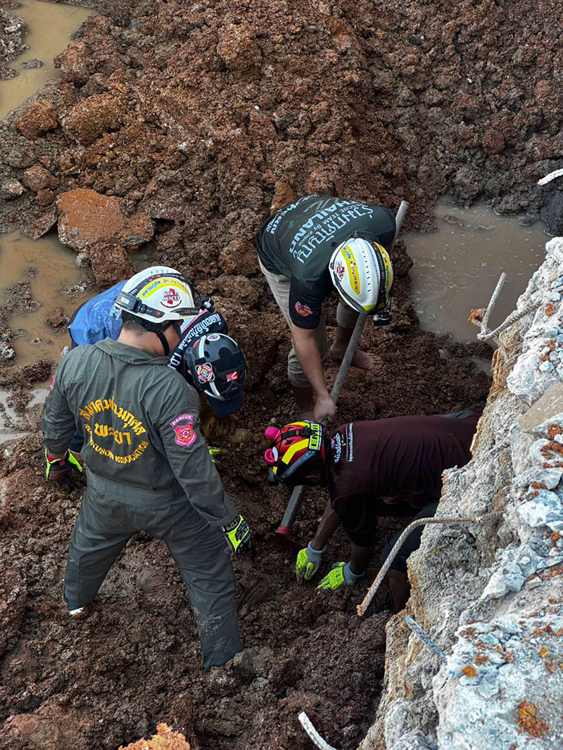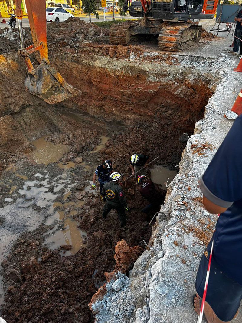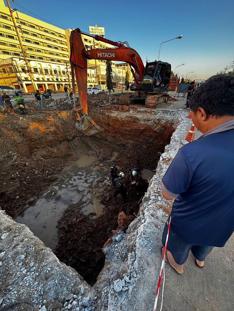 เมื่อถึงที่เกิดเหตุ พบหลุมขุดวางท่อระบายน้ำขนาดใหญ่ ลึกประมาณ 4 เมตร โดยคันดินรอบหลุมได้ยุบตัวอย่างฉับพลัน ทำให้ดินไหลลงมาทับร่างคนงานที่ลงไปทำงานด้านล่าง เจ้าหน้าที่ต้องเร่งกู้ร่างผู้เสียชีวิตขึ้นมาอย่างระมัดระวัง พร้อมปิดกั้นพื้นที่เพื่อป้องกันการถล่มซ้ำ