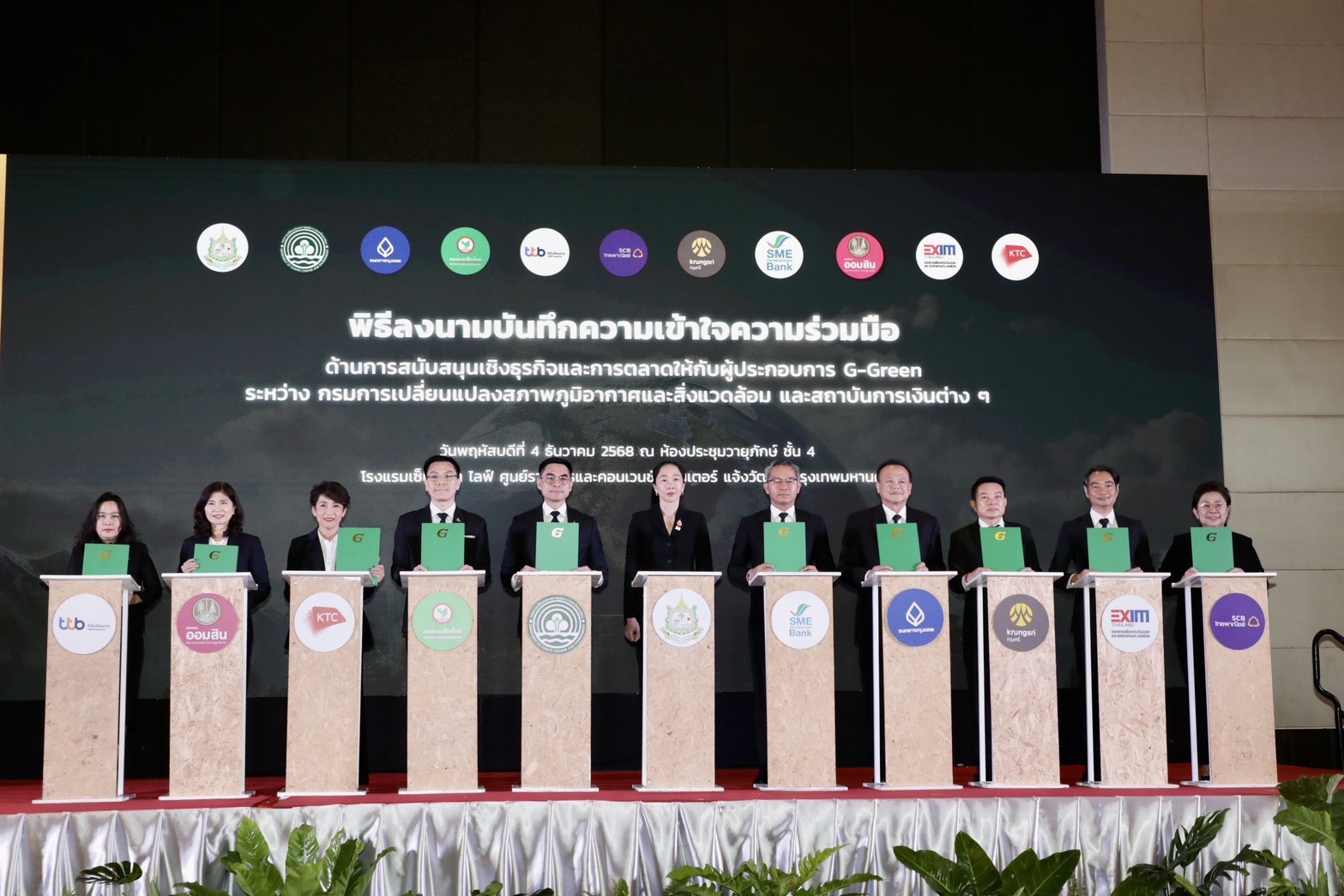 ด้าน ดร. พิรุณ สัยยะสิทธิ์พานิช อธิบดีกรมการเปลี่ยนแปลงสภาพภูมิอากาศและสิ่งแวดล้อม ได้กล่าวว่า สำหรับกิจกรรมวันนี้ ประกอบด้วย การจัดแสดงนิทรรศการ ภายใต้แนวคิด “When Nature Thrives, We All Survive: ธรรมชาติคืนชีวิต สู้วิกฤตภูมิอากาศ” พิธีมอบถ้วยพระราชทาน และรางวัลเชิดชูเกียรติด้านสิ่งแวดล้อม พิธีลงนามบันทึกความเข้าใจความร่วมมือด้านการสนับสนุนเชิงธุรกิจและการตลาดให้กับผู้ประกอบการ G-Green และสถาบันการเงิน จำนวน 9 แห่ง พร้อมเปิดเวทีนำเสนอในหัวข้อ “รวมพลังเครือข่าย สู้วิกฤตภูมิอากาศ สู่สังคมคาร์บอนต่ำ” การเสวนา “5 ประเด็นที่โลกจับตาใน COP 30 สู่การขับเคลื่อนในประเทศไทย” และนำเสนอสรุปผลการประชุม COP 30 “Belém Political Package” ประกอบด้วยผลลัพธ์ 16 ประเด็น อาทิ การเปลี่ยนผ่านที่เป็นธรรมทั้งด้านลดก๊าซและปรับตัว กองทุนภูมิอากาศสีเขียว ตัวชี้วัด Global Goal on Adaptation (GGA) การลดก๊าซเรือนกระจก เป็นต้น โดยกรมการเปลี่ยนแปลงสภาพภูมิอากาศและสิ่งแวดล้อม ได้มุ่งเน้นสร้างความตระหนักรู้และส่งเสริมการมีส่วนร่วมในการอนุรักษ์ ฟื้นฟู และใช้ประโยชน์จากทรัพยากรธรรมชาติอย่างยั่งยืน โดยการแลกเปลี่ยนความคิดเห็นของทั้งภาครัฐ ภาคเอกชน ภาคประชาสังคม จะนำไปสู่การบูรณาการสู่ระดับพื้นที่ โดยมีเครือข่าย ทสม. เป็นหัวใจสำคัญ ในการขับเคลื่อนการดำเนินงาน สื่อสาร และสร้างความเข้าใจกับประชาชนในวงกว้างและเกิดประสิทธิผลได้ในระยะยาว