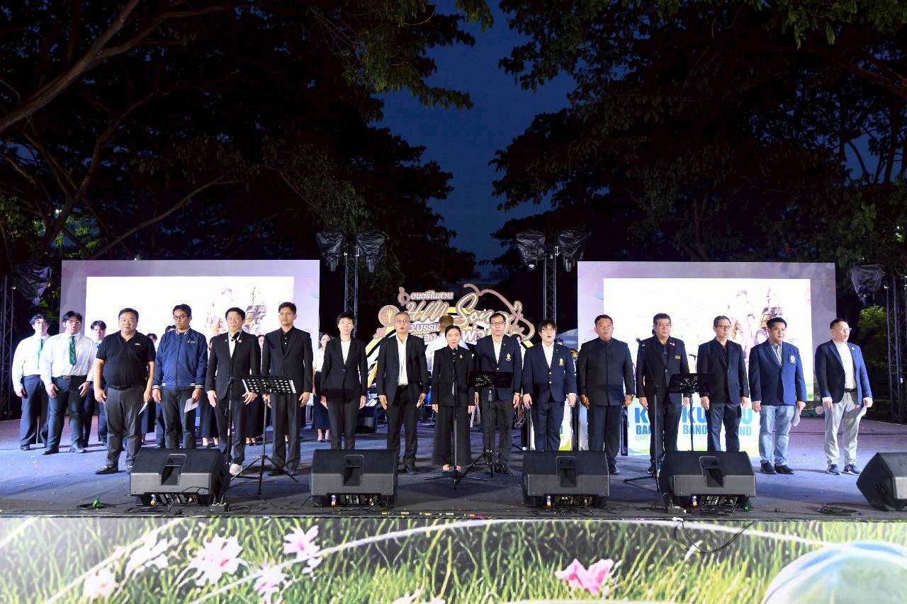 จากนั้น รองปลัดกระทรวง อว. กล่าวว่า ความพิเศษของปีนี้ คือเราตั้งใจน้อมรำลึกถึงพระมหากรุณาธิคุณของทั้งสองพระองค์ควบคู่กัน ทั้งพระบาทสมเด็จพระบรมชนกาธิเบศร มหาภูมิพลอดุลยเดชมหาราช บรมนาถบพิตร และสมเด็จพระนางเจ้าสิริกิติ์ พระบรมราชินีนาถ พระบรมราชชนนีพันปีหลวง ในฐานะคู่พระบารมีที่ทรงทุ่มเทพระวรกายและพระราชหฤทัยเพื่อชาติบ้านเมืองตลอดมา งานนี้จึงเป็นเสมือนการรวมดวงใจของพสกนิกรในการถวายน้อมความอาลัย และสืบสานพระราชปณิธานผ่านเสียงดนตรีอันงดงาม