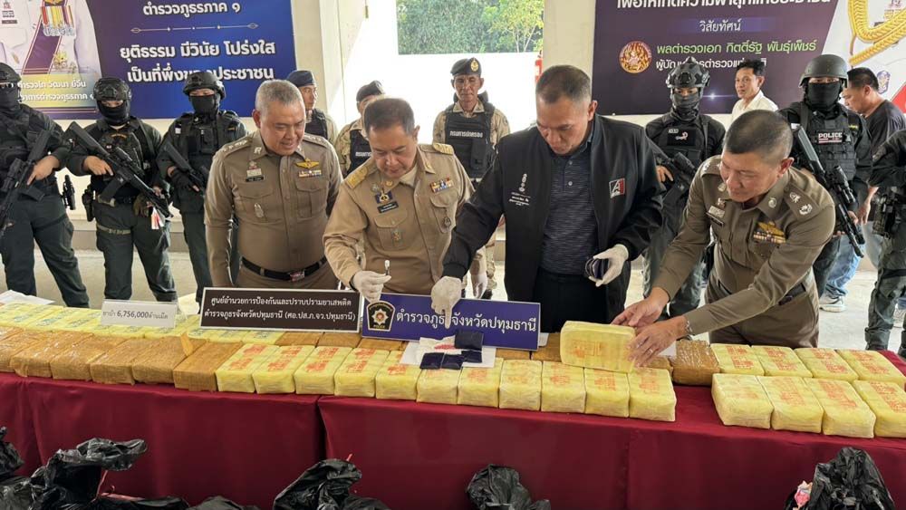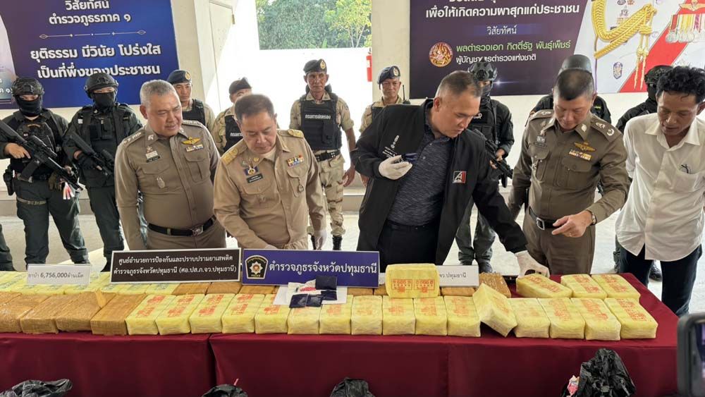 เมื่อเวลา 15.00 น. วันที่ 6 ธันวาคม 2568 ที่กองบังคับการตำรวจภูธรจังหวัดปทุมธานี อำเภอเมือง จังหวัดปทุมธานี พล.ต.ท.วัฒนา ยี่จีน ผบช.ภ.1, พล.ต.ต.พีรพล โชติกเสถียร ผบก.ภ.จว.ปทุมธานี ,พ.ต.อ.ธงรบ แจ้งจิต รอง ผบก.ภ.จว.ปทุมธานี ผกก.สส.ภ.จว.ปทุมธานี นายเอกวิทย์ มีเพียร ผวจ.ปทุมธานี,ร่วมแถลงข่าวการจับกุมและขยายผลเครือข่ายผู้ร่วมกระทำความผิดเกี่ยวกับยาเสพติด โดยได้ทำการจับกุมตัว นายพีกร อายุ 35 ปี ชาวจ.พระนครศรีอยุธยา พร้อมด้วยของกลาง 1.ยาเสพติดให้โทษประเภทที่ 1(ยาบ้า) จำนวน 6,756,000 เม็ด มูลค่า 200 ล้านบาท