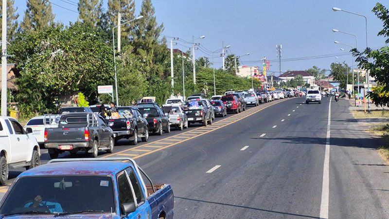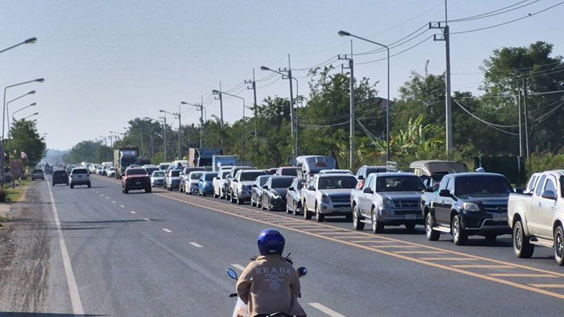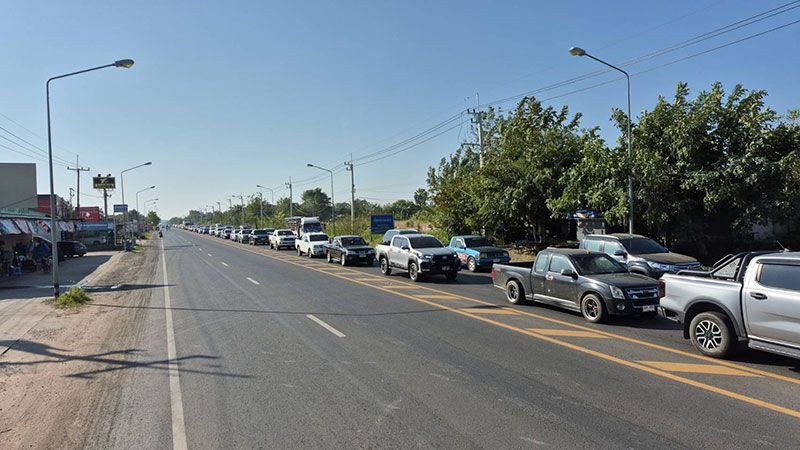 โดยเฉพาะเขตอำเภอประโคนชัย จ.บุรีรัมย์ ซึ่งกลายเป็นเส้นทางมุ่งหน้าสู่พื้นที่ชั้นใน พบว่าการจราจรติดสะสมยาวกว่า 2 กิโลเมตร รถเคลื่อนตัวได้ช้าเป็นช่วงๆ ซึ่งเจ้าหน้าที่ตำรวจ สภ.ประโคนชัย ต้องเร่งลงพื้นที่อำนวยความสะดวก พร้อมเปิดช่องทางพิเศษ และจัดเจ้าหน้าที่โบกรถเพื่อเร่งระบายการจราจรอย่างเร่งด่วน เพื่อป้องกันการเกิดเหตุซ้ำซ้อนบนท้องถนน