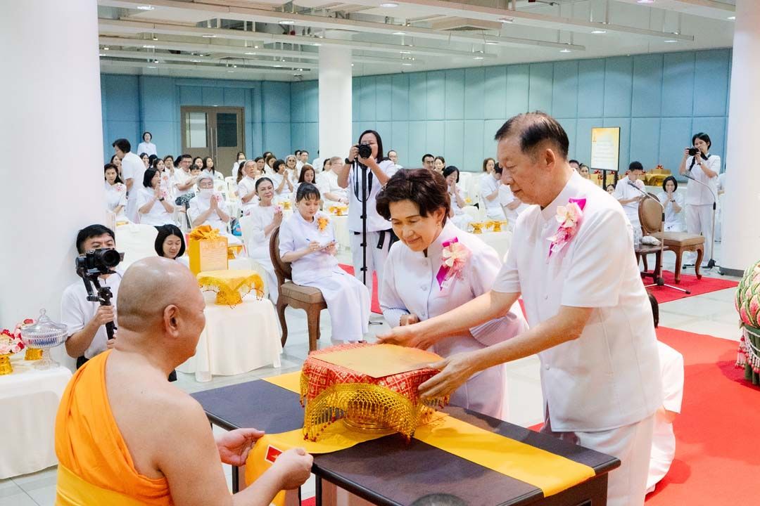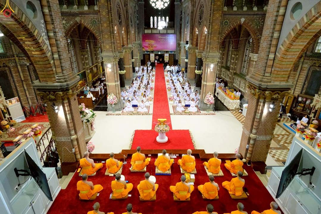 พิธีบรรจุพระบรมสารีริกธาตุถวายเป็นพุทธบูชา จัดขึ้นเนื่องด้วยเหตุภัยพิบัติทางธรรมชาติ ทำให้ส่วนยอดเก่าของโบสถ์ชำรุดร่วงตกลงมา คณะสงฆ์ และคณะศิษย์ ฯ ร่วมด้วยผู้มีจิตศรัทธา จึงพร้อมใจกันดำเนินการบูรณปฏิสังขรณ์ส่วนยอดของโบสถ์ขึ้นใหม่ โดยได้รับเกียรติจากชาวท้องถิ่น ซึ่งเป็นนักออกแบบที่มีความรู้เกี่ยวกับโบสถ์คริสต์เก่า และมีความสนใจศึกษาเกี่ยวกับเรื่องวัดในพระพุทธศาสนา จึงเป็นที่มาของการออกแบบยอดโบสถ์ชิ้นใหม่เป็นรูปแบบประติมากรรมฉัตร 7 ชั้น มีส่วนยอดเป็นดอกบัวตูม เพื่อบรรจุพระบรมสารีริกธาตุ มีมงคลนามว่า “อัครสุวรรณฉัตรสวรรค์” เพื่อน้อมถวายเป็นพุทธบูชา และเป็นเสมือนสัญลักษณ์แห่งการสืบสานมโนปณิธานของมหาปูชนียาจารย์ ในการเผยแผ่พระพุทธศาสนาในเนเธอร์แลนด์ ให้ชาวไทย และชาวท้องถิ่น รวมถึงผู้ที่สนใจได้รู้จักสันติสุขภายในขยายไปสู่สันติภาพโลก