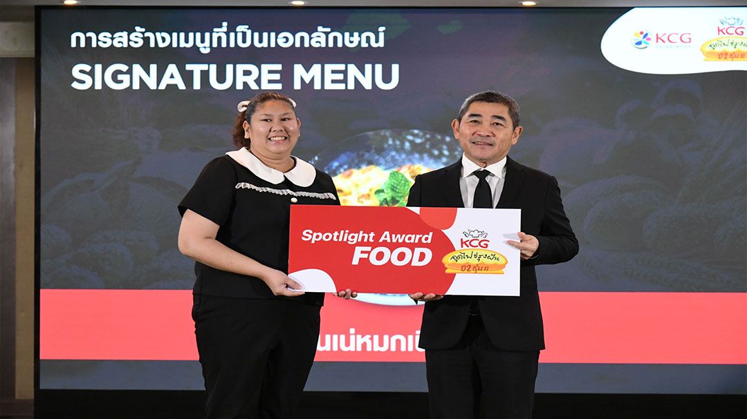 ในพิธีปิดโครงการ มีการมอบรางวัลพิเศษ “Spotlight Award” ให้แก่ผู้เรียนที่มีความมุ่งมั่นตั้งใจในการเข้าร่วมกิจกรรมตลอดโครงการ เป็นเงินรางวัลท่านละ 5,000 บาท และชุดกิฟต์เซตจาก KCG จำนวน 2 ท่าน ได้แก่ ผู้เรียนจากคอร์สอาหารตะวันตก กับเมนู Signature เพนเน่หมกเนื้ออบชีส และผู้เรียนจากคอร์สเบเกอรี กับเมนู Signature ครัวซองต์และเค้กมะพร้าวอ่อนลาวา นอกจากนี้ ยังมีการมอบเกียรติบัตรให้แก่ผู้เข้าร่วมอบรมที่สำเร็จหลักสูตรด้วย