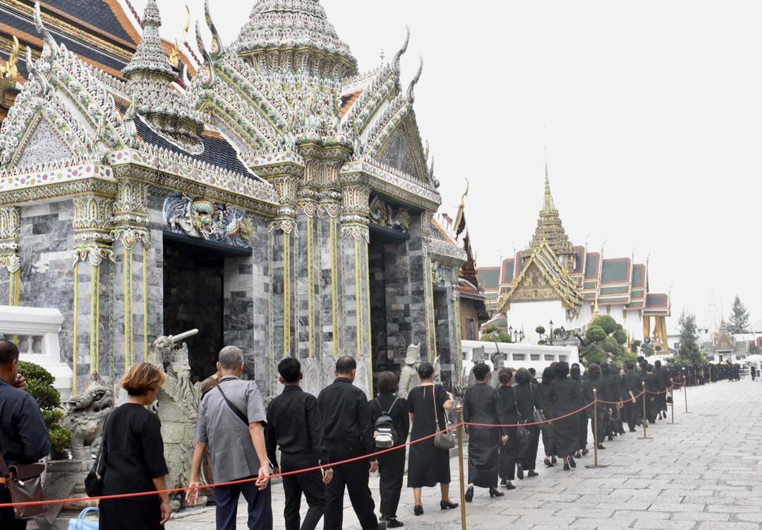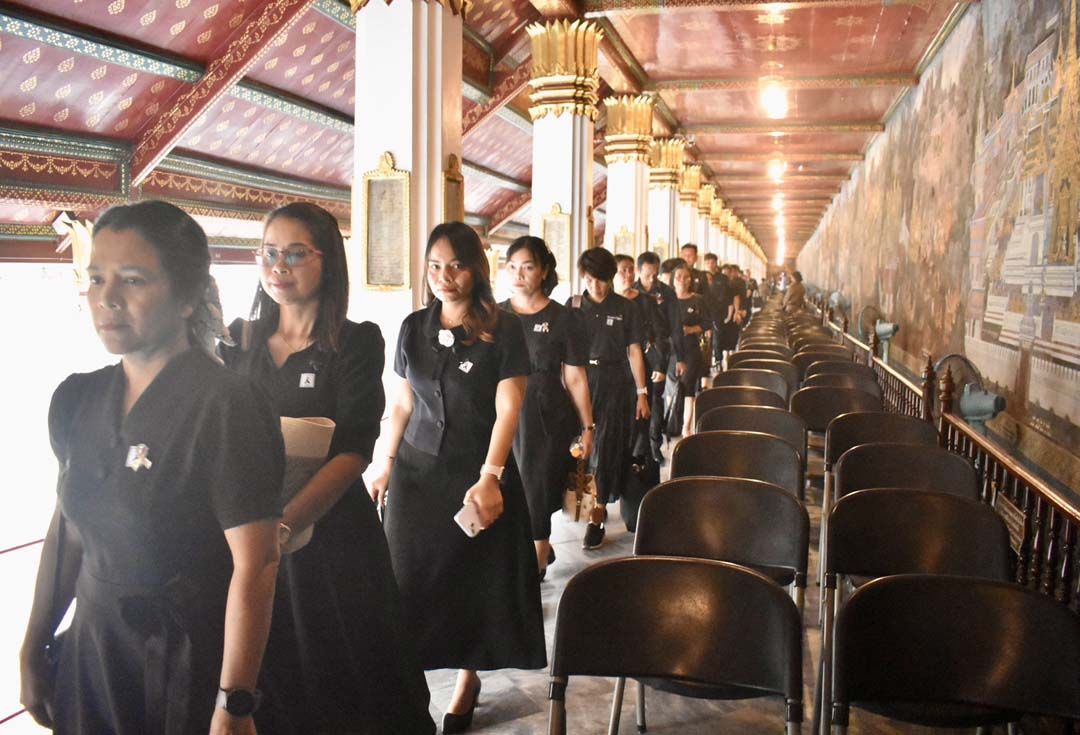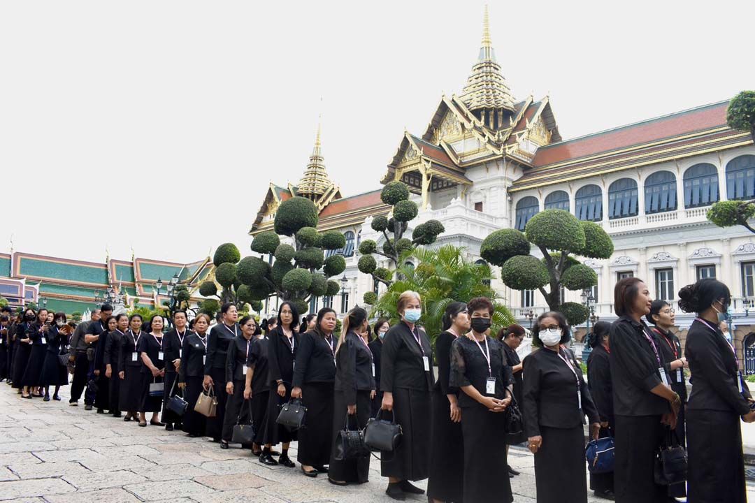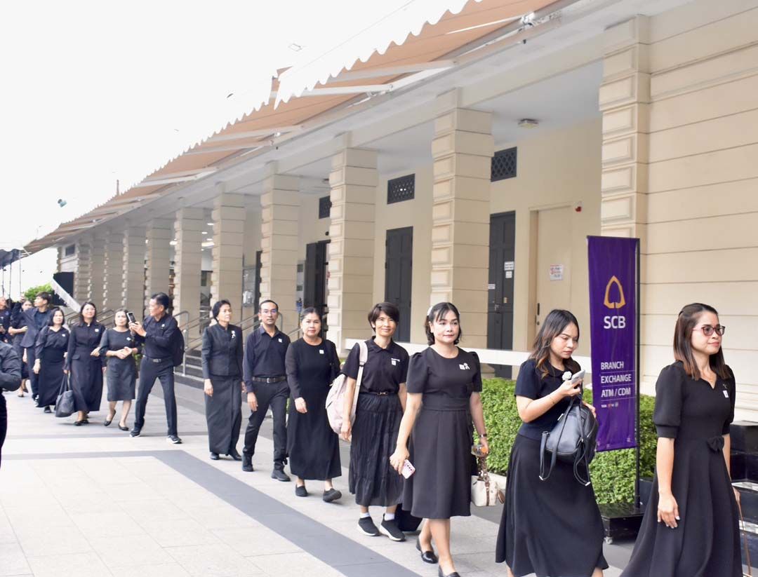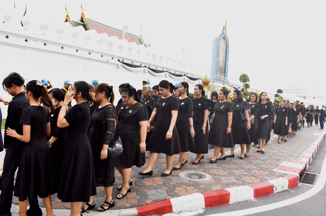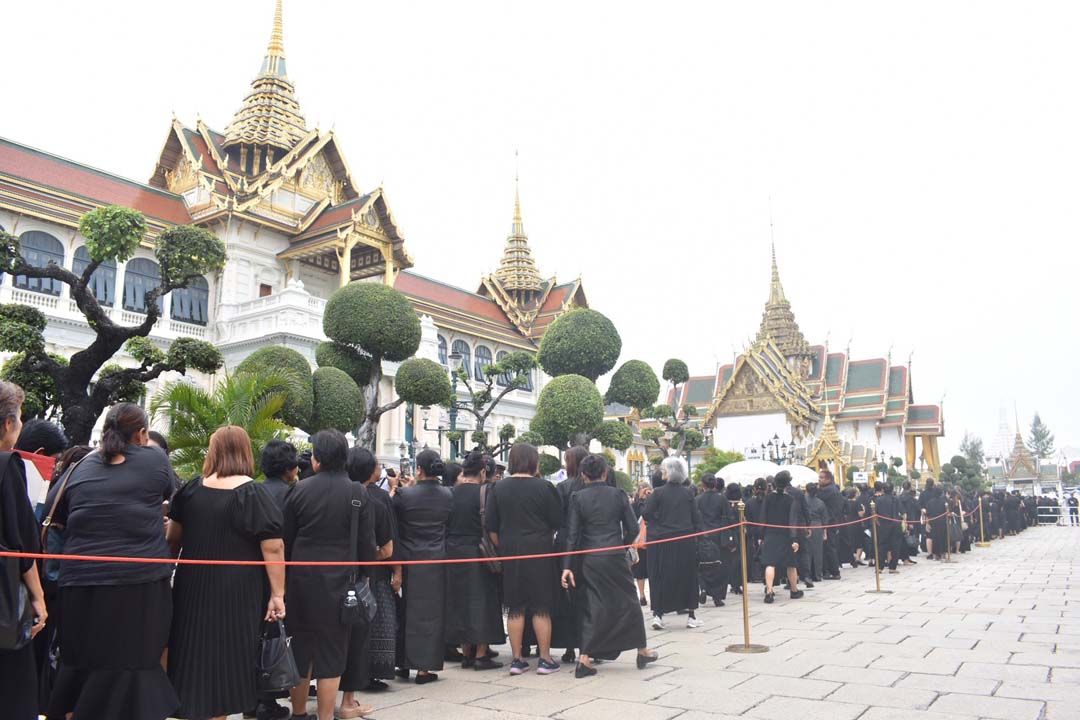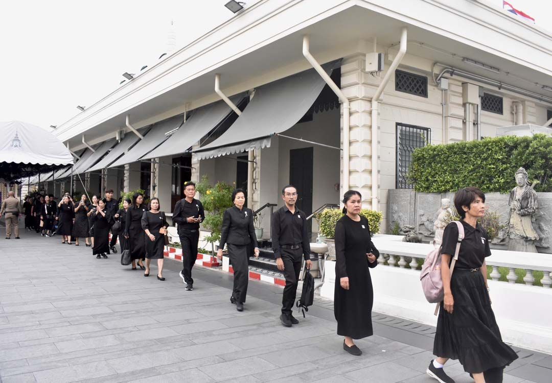 พสกนิกรทั่วทุกสารทิศที่ส่วนใหญามาเป็นหมู่คณะ เข้ากราบถวายบังคมพระบรมศพ"สมเด็จพระพันปีหลวง"ด้วยสำนึกในพระมหากรุณาธิคุณ
