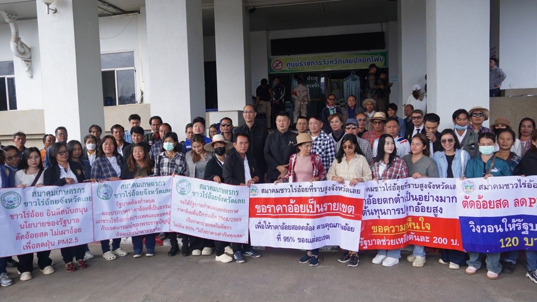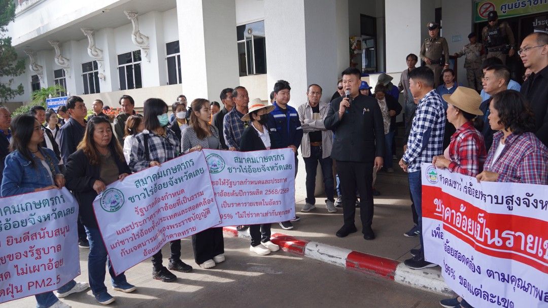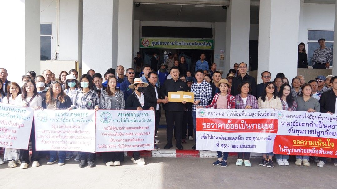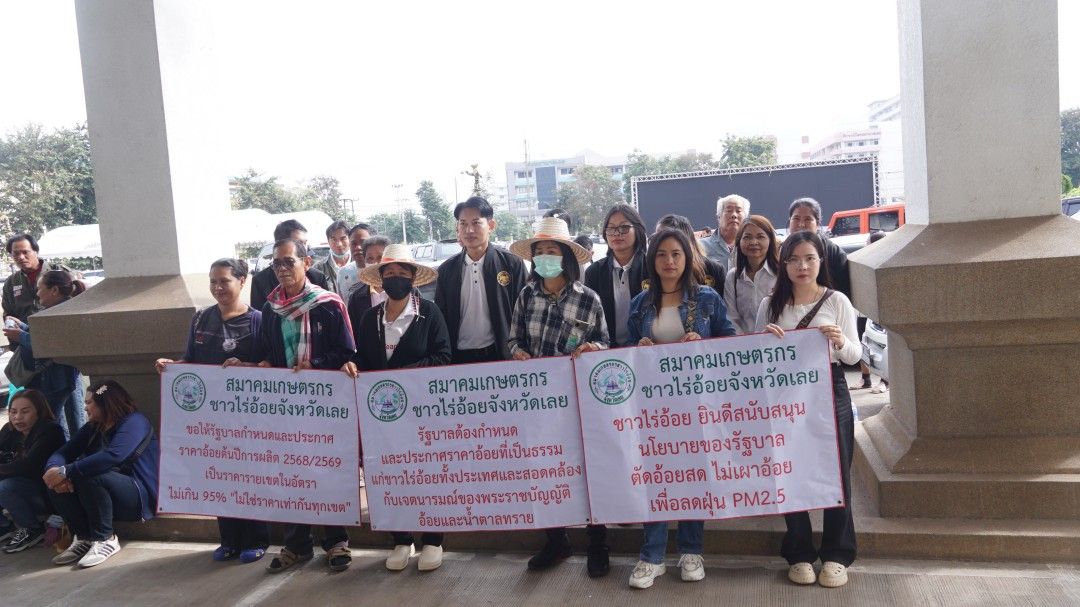 วันที่ 11 ธันวาคม 2568 ที่หน้าศาลากลางจังหวัดเลย สมาคมชาวไร่อ้อยที่ราบสูงจังหวัดเลย และสมาคมเกษตรกรชาวไร่อ้อยจังหวัดเลย โดยมี นายสิทธิบูรณ์ และ นายปฏินันท์ เป็นแกนนำ ได้นำตัวแทนสมาชิกกว่า 100 คน เข้ายื่นหนังสือถึง นายอนุทิน ชาญวีรกูล นายกรัฐมนตรี ผ่าน นายไพรินทร์ ลิ่มเจริญ รองผู้ว่าราชการจังหวัดเลย เรื่องราคาอ้อยขั้นต้นปีการผลิต 2568-2569 ตกต่ำ และปัญหาความเดือดร้อนของชาวไร่อ้อย