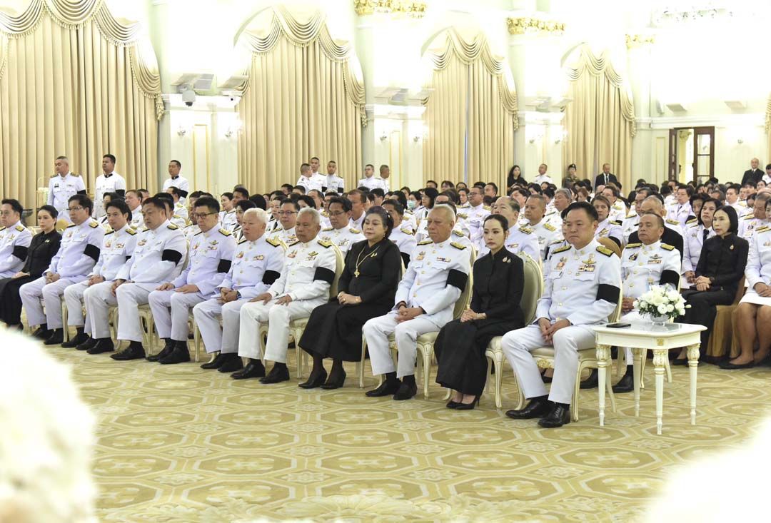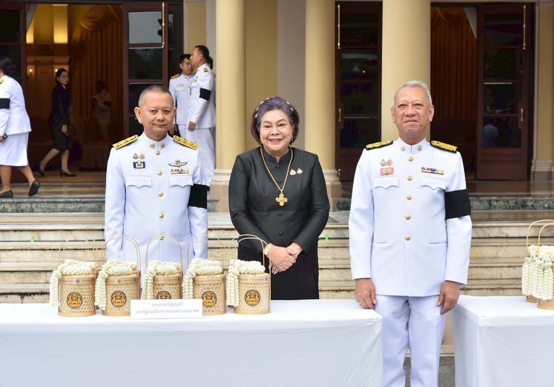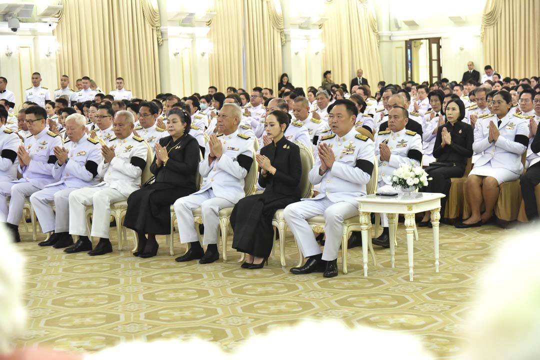 นายกรัฐมนตรี และนางสาวธนนนท์ นิรามิษ พร้อมด้วยคณะรัฐมนตรี ถวายเครื่องไทยธรรมและผ้าไตรแด่สมเด็จพระพุฒาจารย์ วัดไตรมิตรวิทยาราม ประธานฝ่ายสงฆ์ พร้อมด้วยพระสงฆ์ รวมจำนวน 10 รูป พระสงฆ์อนุโมทนา นายกรัฐมนตรีกรวดน้ำ กราบลาพระรัตนตรัย และถวายความเคารพพระบรมฉายาลักษณ์สมเด็จพระนางเจ้าสิริกิติ์ พระบรมราชินีนาถ พระบรมราชชนนีพันปีหลวง