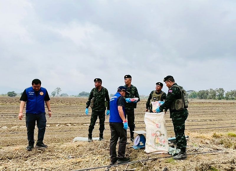 จนกระทั่งเวลา 06.30 น. เจ้าหน้าที่เข้าตรวจสอบพื้นที่เกิดเหตุ พบกระสอบดัดแปลงเป็นเป้สะพายจำนวน 10 กระสอบ ภายในบรรจุยาไอซ์กระสอบละ 25 ก้อน น้ำหนักก้อนละ 1 กิโลกรัม รวมของกลาง 250 กิโลกรัม ไม่พบผู้เสียชีวิตหรือบาดเจ็บของฝ่ายตรงข้าม