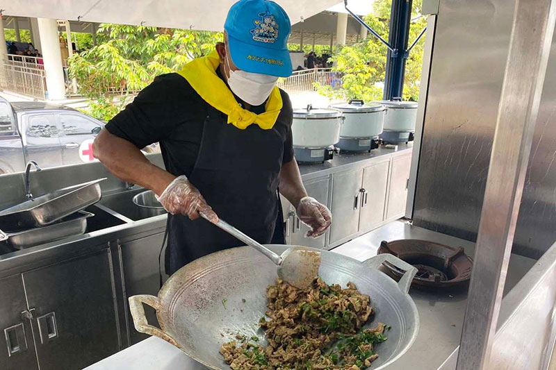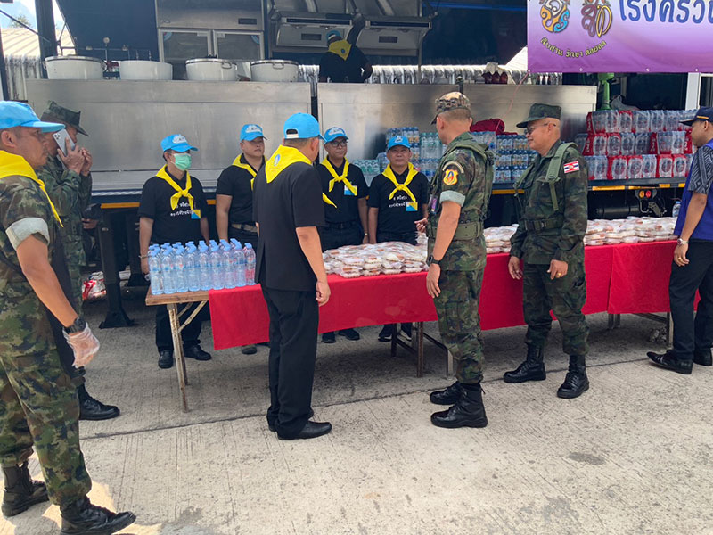 ทั้งนี้ กองบัญชาการป้องกันชายแดนจันทบุรีและตราด (กปช.จต.) ร่วมกับจังหวัดตราด โดยศูนย์อำนวยการจิตอาสาพระราชทานจังหวัดตราด ได้ดำเนินการจัดตั้งโรงครัวพระราชทาน ดูแลประชาชนผู้อพยพจากพื้นที่อำเภอบ่อไร่ ณ ศูนย์พักพิงชั่วคราว มาตั้งแต่วันที่ 10 ธันวาคม 2568 โดยโรงครัวพระราชทาน ยังคงประกอบอาหารเลี้ยงประชาชนในศูนย์พักพิงชั่วคราว เป็นวันที่สอง ซึ่งประกอบอาหาร 3 มื้อ มื้อละ 600 กล่อง รวม 1,800 กล่องต่อวัน โดยวันนี้โรงครัวพระราชทาน จัดอาหารปรุงสำเร็จ 3 มื้อ ได้แก่ มื้อเช้า ผัดผักรวมหมูสับ ไส้กรอกไก่นึ่ง ซอสมะเขือเทศ ข้าวสวย / มื้อกลางวัน หมูทอดกะเทียม นักเก็ตไก่ทอด ข้าวสวย และมื้อเย็น ผัดพริกแกงไก่ ไข่ดาว ข้าวสวยรวมทั้งหมด 1,800 กล่อง ส่งมอบพร้อมน้ำดื่ม ให้ประชาชนในศูนย์พักพิงอย่างครบถ้วน