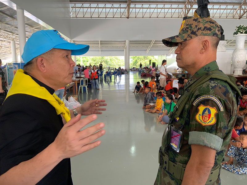 ผบ.นย.เยี่ยมผู้อพยพที่ตราด บอกรอสถานการณ์ปลอดภัยอีกไม่นานกลับได้ ขณะเคอร์ฟิวยังไม่ต้องประกาศ ด้านผู้อพยพขอบคุณผบ.นย.และทหารนาวิกฯ