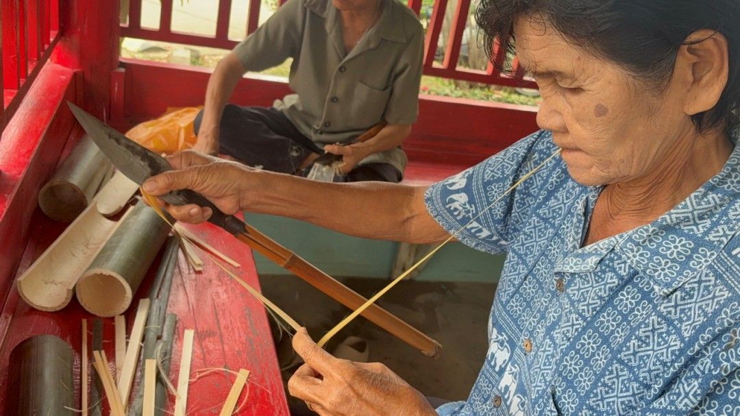 สานดอกมะลิไผ่สีสุก! ชาวบ้านบางเจ้าฉ่า จ.อ่างทอง จัดกิจกรรมถวายอาลัยปัญญาสมวาร ‘สมเด็จพระพันปีหลวง’ น้อมรำลึกถึงพระมหากรุณาธิคุณงานศิลปาชีพ