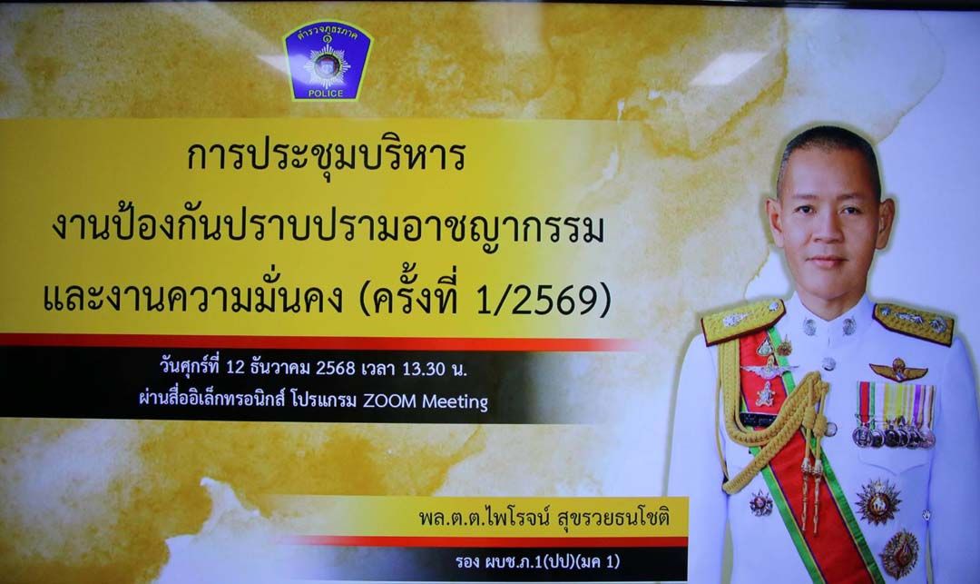 12 ธันวาคม 2568 พล.ต.ต.อรรถพล อนุสิทธิ์ รอง ผบช.ภ.1/โฆษก ตร.ภ.1 , พล.ต.ต.ภัคพงศ์ สายอุบล ผบก.อก.ภ.1/รองโฆษก ตร.ภ.1 และ พล.ต.ต.ฤทธินันท์ ปุ๋ยพันธวงศ์ ผบก.กค.ภ.1/รองโฆษก ตร.ภ.1 เปิดเผยว่า วันนี้ (12 ธ.ค.68) พล.ต.ต.ไพโรจน์ สุขรวยธนโชติ รอง ผบช.ภ.1 เป็นประธานการประชุมบริหารงานป้องกันปราบปรามอาชญากรรมและงานความมั่นคง ครั้งที่ 1/2568 ณ ห้องประชุม สำนักงาน รอง ผบช.(ปป)