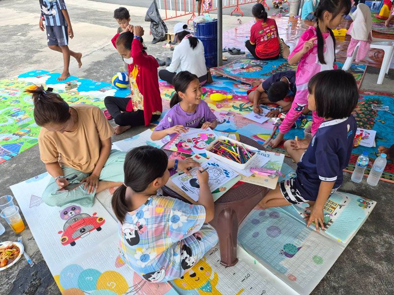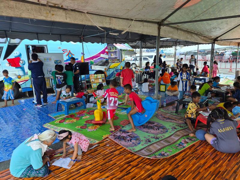 ทั้งนี้ มีการจัดโซนสถานที่ไว้เฉพาะเป็นสนามเด็กเล่น เพื่อให้น้องๆ เยาวชนได้นั่งเล่นแยกจากโซนพักอาศัย โดยได้มีการนำของเล่น และอุปกรณ์การเรียนรู้ มาจัดกิจกรรมให้กับเด็ก ๆ ในศูนย์พักพิงได้เล่นอย่างสมวัย เพื่อให้การเรียนรู้ของเด็ก ๆ ไม่ว่าจะเป็นกิจกรรมการปัญหาชิงรางวัล และกิจกรรมการวาดภาพระบายสี เป็นต้น