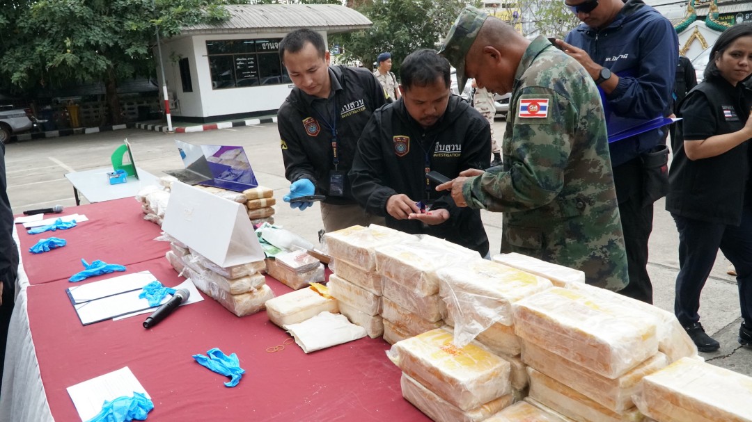 เมื่อรถจักรยานยนต์ขับมาถึงระยะห่างจากจุดดักซุ่มประมาณ 200 เมตร เจ้าหน้าที่จึงได้แสดงตัวเข้าจับกุม คนขับรถได้ทิ้งของกลางไว้ทันที และรีบขับหลบหนีอาศัยความมืดเข้าไปในถนนยางพาราหลบหนีไปได้ โดยจากการตรวจสอบภายในกระสอบวัตถุต้องสงสัย พบยาเสพติดทั้ง 3 ชนิดตามที่กล่าวมาข้างต้น เจ้าหน้าที่จึงได้ตรวจยึดไว้ทั้งหมด พร้อมทั้งเร่งติดตามผู้ที่หลบหนีมาดำเนินคดีตามกฎหมายต่อไป