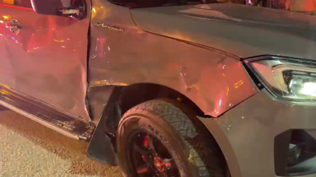 นายคฆาวุธ (22 ปี) คนขับรถกระบะ ให้การว่า ตนเองพร้อมญาติกำลังเดินทางกลับหลังไปกินข้าวมา พอมาถึงบริเวณทางโค้ง รถมอเตอร์ไซค์ที่มาจากอีกฝั่งได้เสียหลักและพุ่งชนรถของตนเองจนเกิดเหตุขึ้น