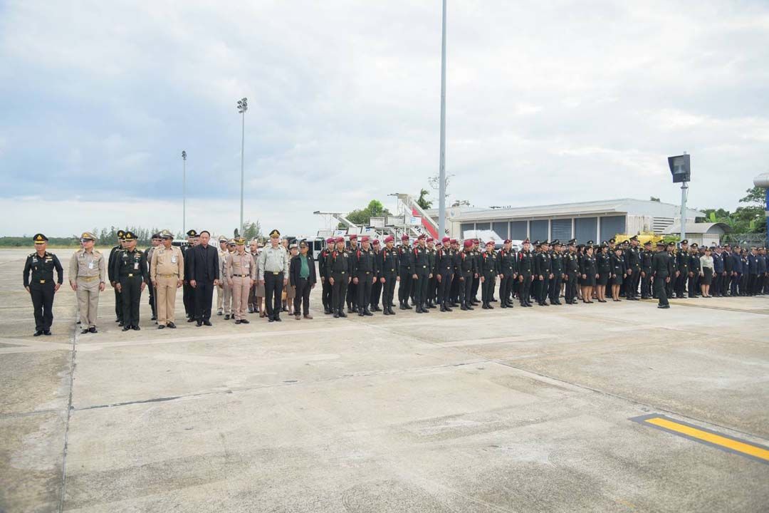 เมื่อเครื่องบินลำเลียงศพถึงลานจอดท่าอากาศยานนานาชาติกระบี่ จากนั้นเจ้าหน้าที่ได้นำหีบศพ จ่าสิบเอก ทวีรัตน์ รัตนบุรี ที่คลุมด้วยธงชาติไทยลงจากท้ายเครื่องบิน ได้มีการสรุปสถานการณ์ และกล่าวสดุดี ประกอบพิธีทางศาสนา กองทหารเกียรติยศสั่งทำความเคารพ พลแตรเดี่ยวเป่าแตรคำนับ 1 จบ จากนั้นเจ้าหน้าที่ได้เคลื่อนศพผ่านประธาน ผู้บังคับบัญชา และผู้เข้าร่วมพิธี เชิญศพขึ้นตั้งบนรถยนต์ ขบวนรถยนต์เชิญศพเคลื่อนออกจากท่าอากาศยานนานาชาติกระบี่ ไปยังวัดถ้ำโกบ ต.หน้าเขา อ.เขาพนม จ.กระบี่ เพื่อประกอบพิธีพระราชทานน้ำหลวงอาบศพ พิธีเชิญพวงมาลาหลวงพระราชทาน และพวงมาลาประทานวางหน้าหีบศพ และพิธีสวดพระอภิธรรมศพ ตามลำดับต่อไป ซึ่งในขณะที่ขบวนรถผ่านย่านชุมชนเหนือคลอง และเขาพนม ได้มีประชาชนเข้าแถวยืนโบกธงชาติไทยเพื่อแสดงความอาลัยและสดุดีด้วย