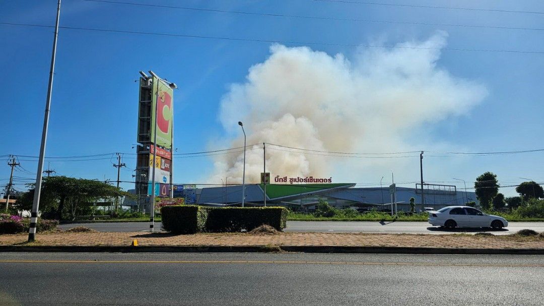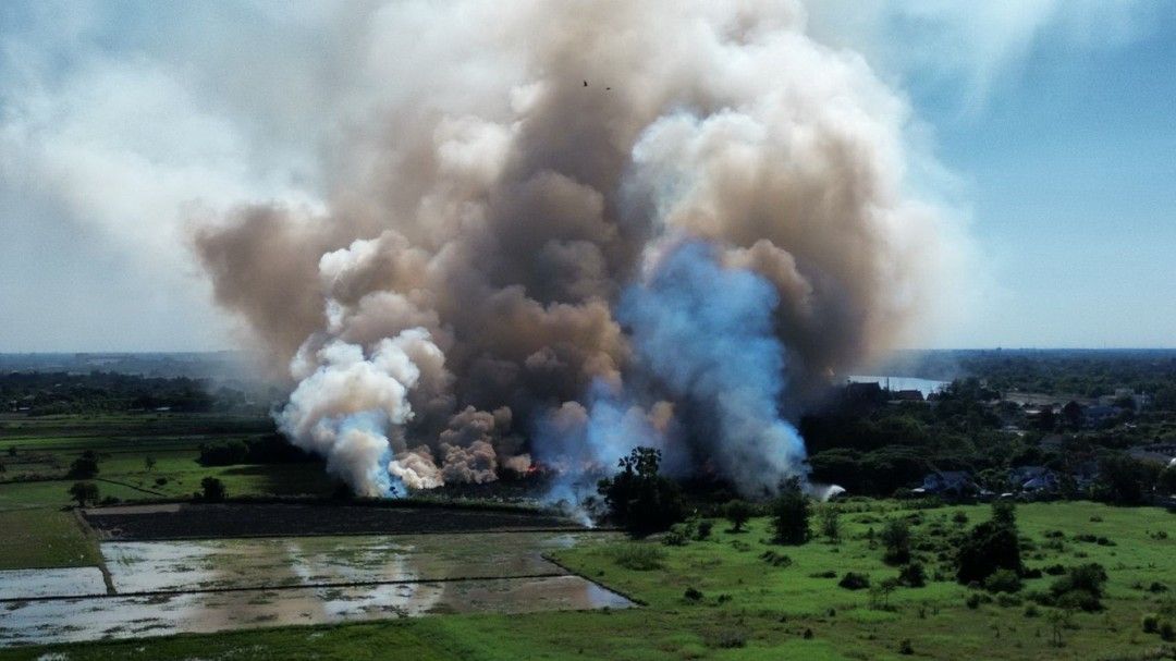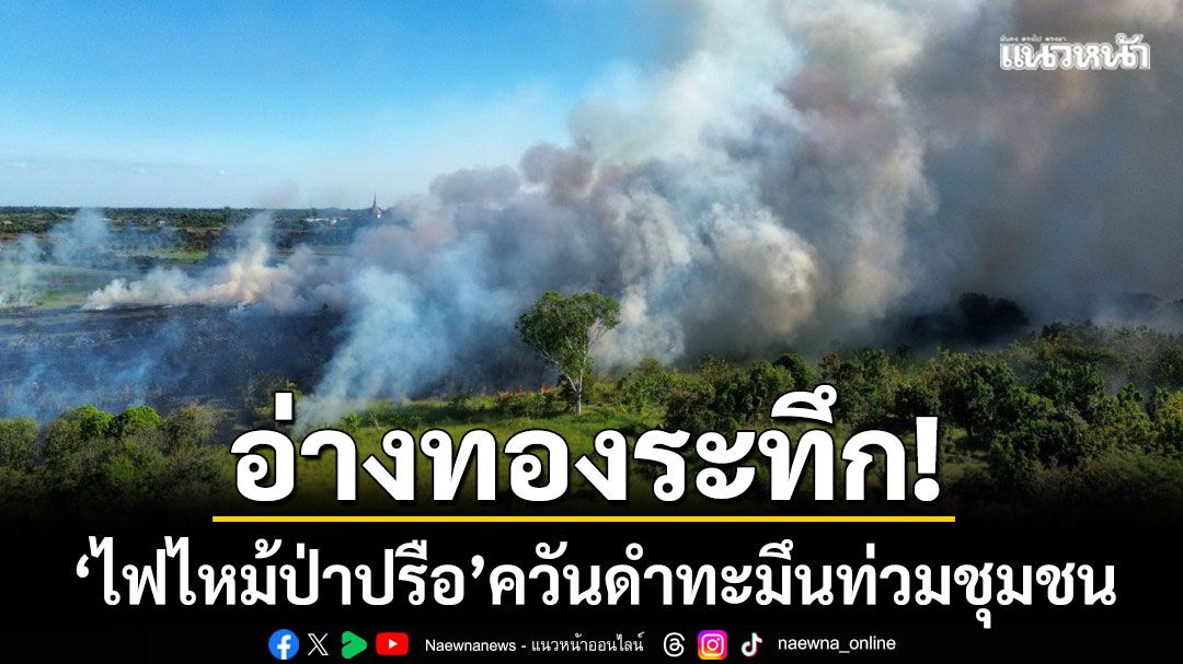 อ่างทองระทึก! ‘ไฟไหม้ป่าปรือ’ ควันดำทะมึนท่วมชุมชนทรัพย์เมืองทอง เจ้าหน้าที่เร่งป้องกันไฟลามเข้าบ้านเรือนประชาชน