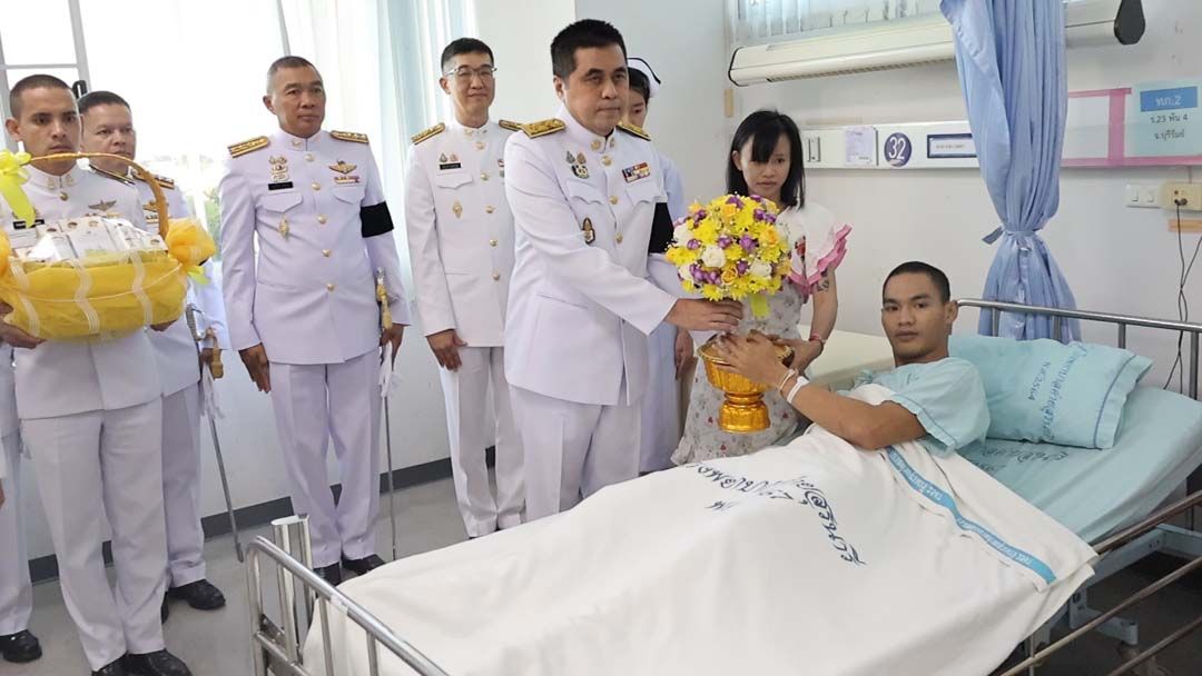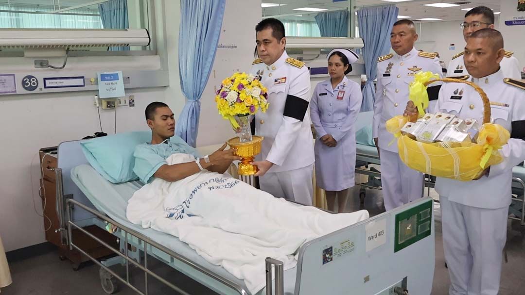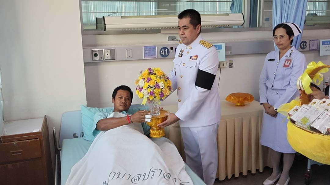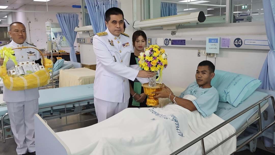 ‘ในหลวง-พระราชินี’พระราชทานดอกไม้ ตะกร้าสิ่งของแก่กำลังพลบาดเจ็บ เหตุชายแดนไทย-กัมพูชา