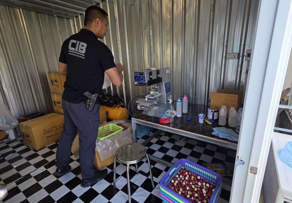 3.1 สถานที่ผลิตและจัดเก็บบรรจุภัณฑ์ วัสดุอุปกรณ์บรรจุและผลิตยาแก้ไอปลอม นำหมายค้นศาลจังหวัดสิงห์บุรีเข้าตรวจค้นภายในบ้านพักแห่งหนึ่ง ใน ม.5 ต.บางกระบือ อ.เมือง จ.สิงห์บุรี สามารถตรวจยึดของกลางเป็นขวดเปล่ารอบรรจุยาแก้ไอปลอม 35,000 ขวด ฝาขวด 79,000 ฝา อุปกรณ์การพิมพ์ฝาและฉลาก 6 รายการ สารเคมีที่ใช้ในการผลิตยาแก้ไอปลอม เช่น ซิทริค แอซิด, แซคคารีน จำนวน 17 รายการ รวมของกลางทั้งสิ้นกว่า 120,000 ชิ้น