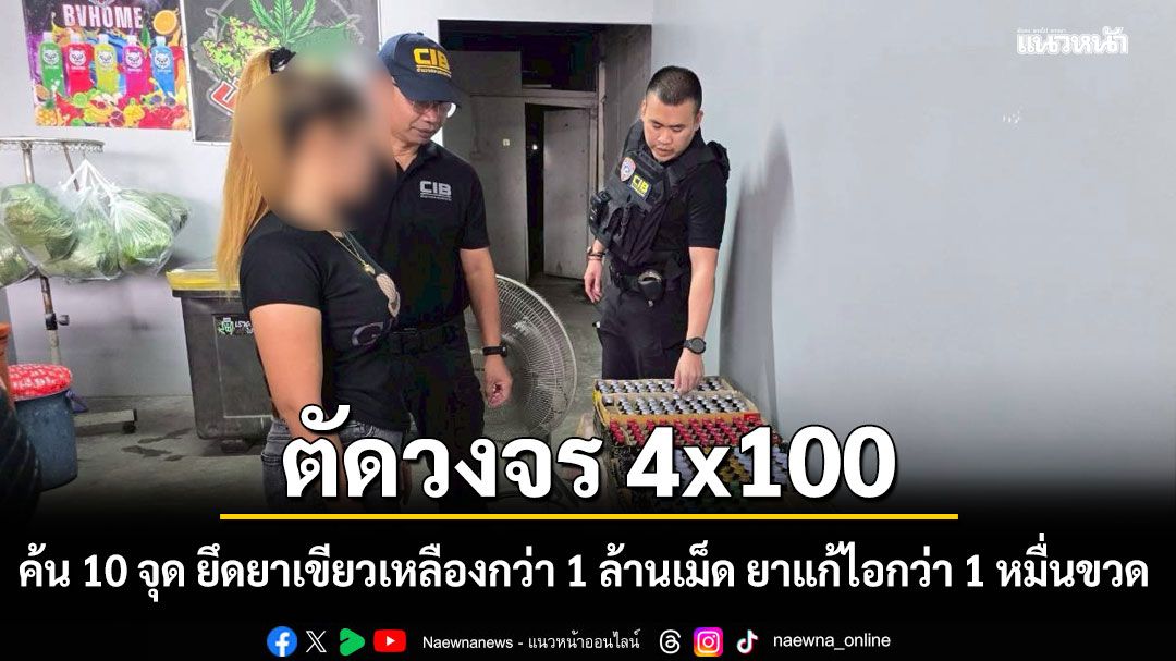ตำรวจสอบสวนกลาง (CIB) ร่วม อย. ตัดวงจร 4x100 มรณะมอมเมาเยาวชน ทลาย 3 เครือข่าย ค้น 10 จุด ยึดยาเขียวเหลืองกว่า 1 ล้านเม็ดยาแก้ไอกว่า 1 หมื่นขวด มูลค่ากว่า 20 ล้านบาท